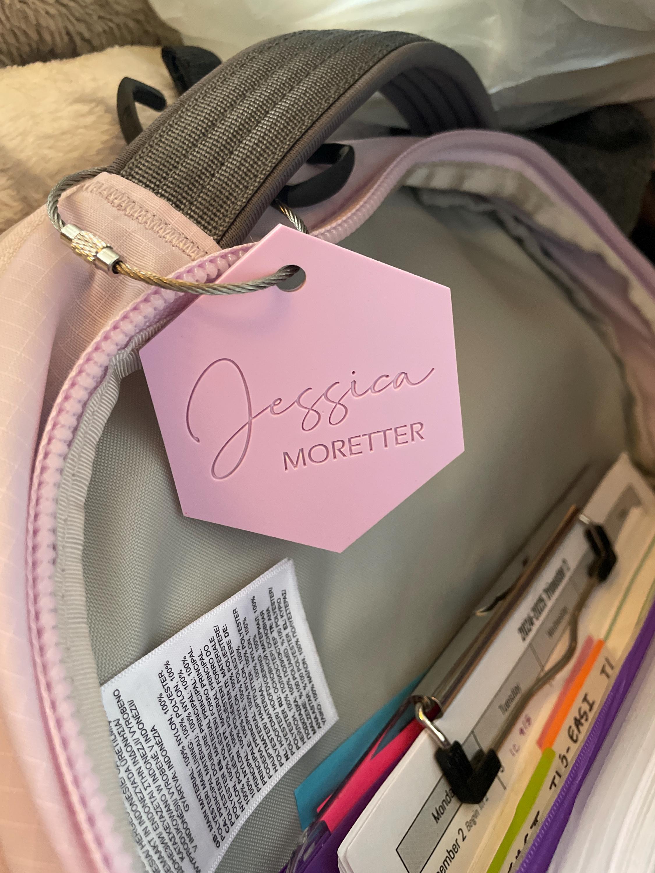 Seeking a backpack tag resilient enough to endure the rigors of school and travel? Look no further. Elevate your bag game with Mod Envy's Acrylic Backpack Tag. Effortlessly label your belongings for swift identification, ensuring they shine amidst the crowd!