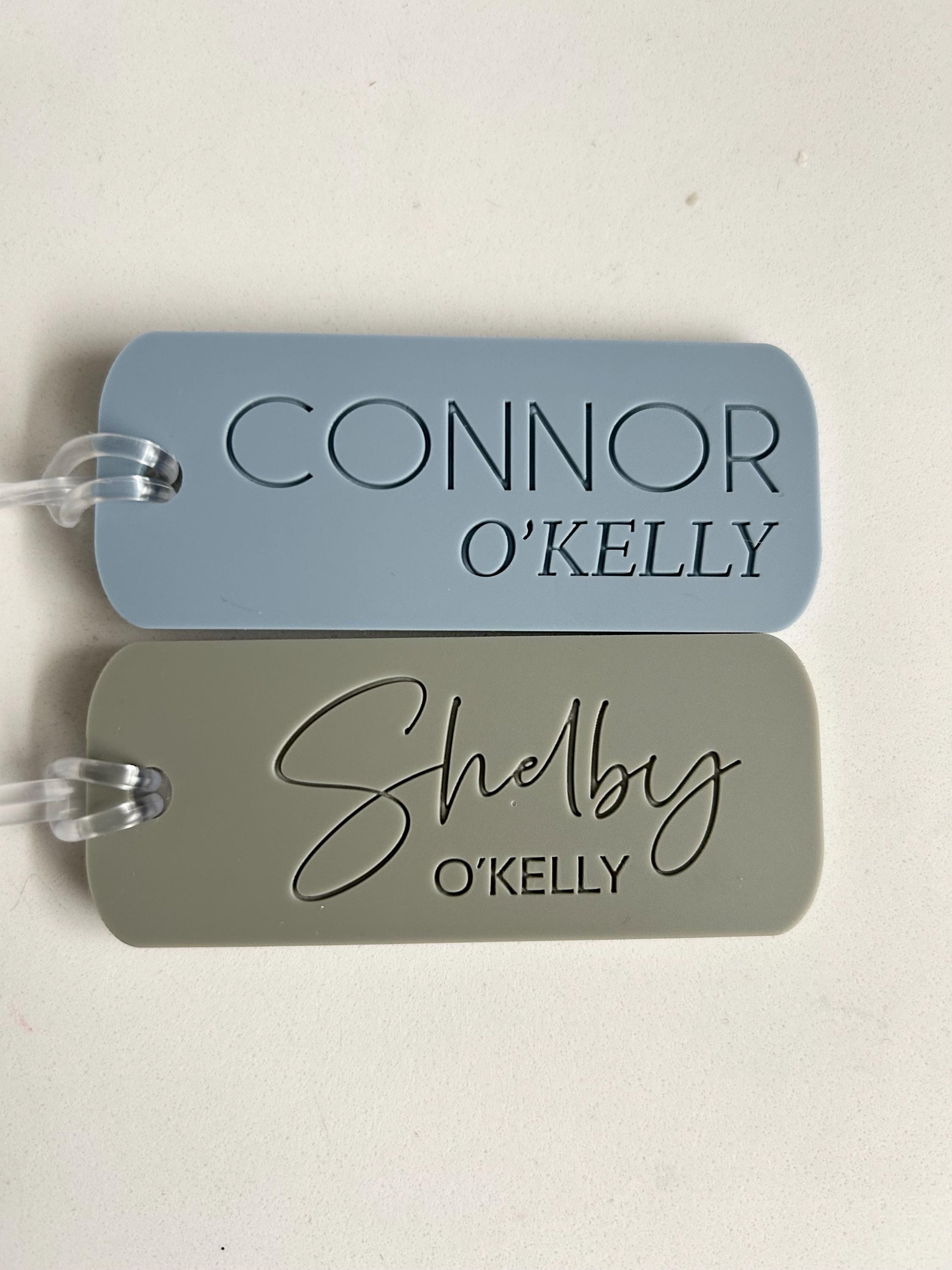 Our pastel-colored acrylic luggage tags measure approximately 2 1/2" x 2 3/4" in size with a width of 1/8". Choose from a variety of color options and design styles to suit your taste and travel aesthetic! Pastel tags are matte on the engraved side and shiny and smooth on the back side.