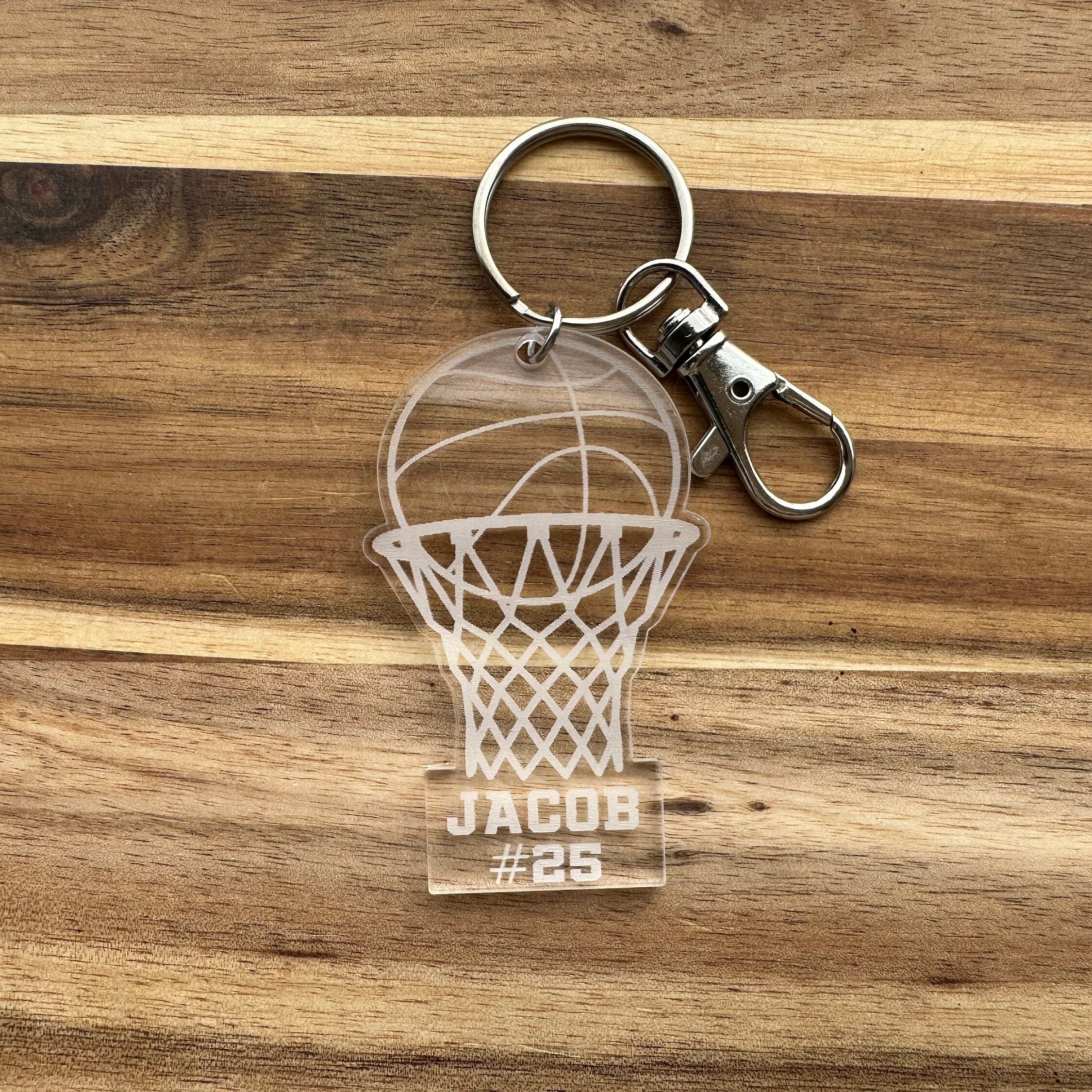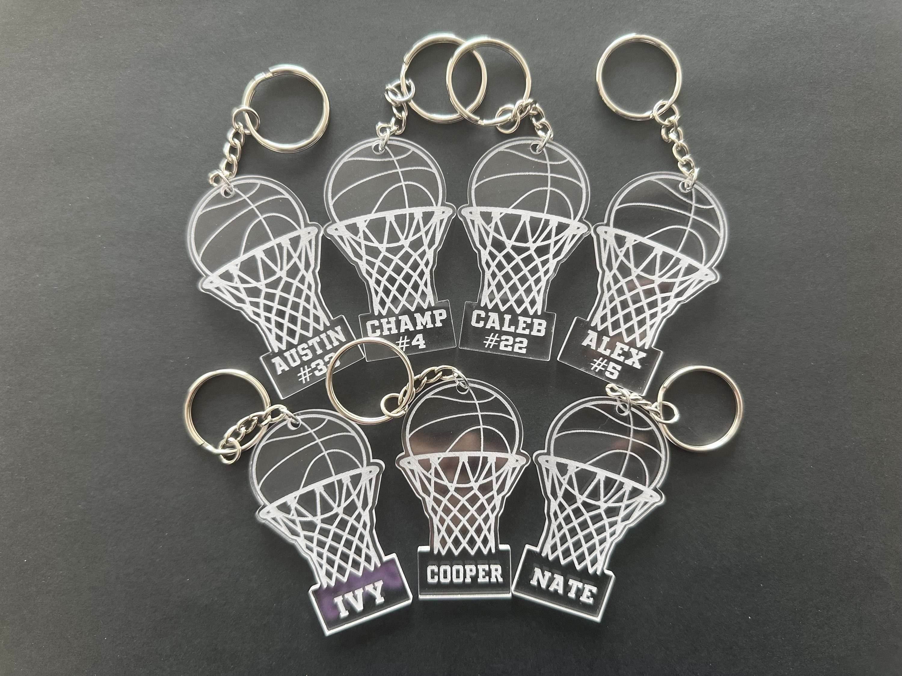 Celebrate your basketball team with a thoughtful gift like the Basketball Hoop and Ball Keychain, perfect for Senior Night or the end of the season. This sports team bag tag doubles as a name tag keychain, making it a practical and personalized accessory for players and coaches alike. Make a lasting impression with this unique token of appreciation.