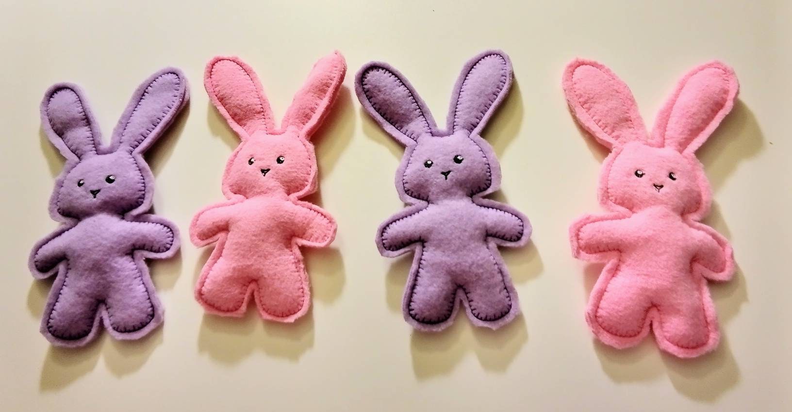 Bring a little Easter joy to your furry friend with these adorable Bunny Squeaky Toys! Crafted with love, these soft and cuddly bunnies are perfect for your small dog to play with. Made from 100% polyester fleece with machine embroidered features, these bunnies are as cute as they are durable.