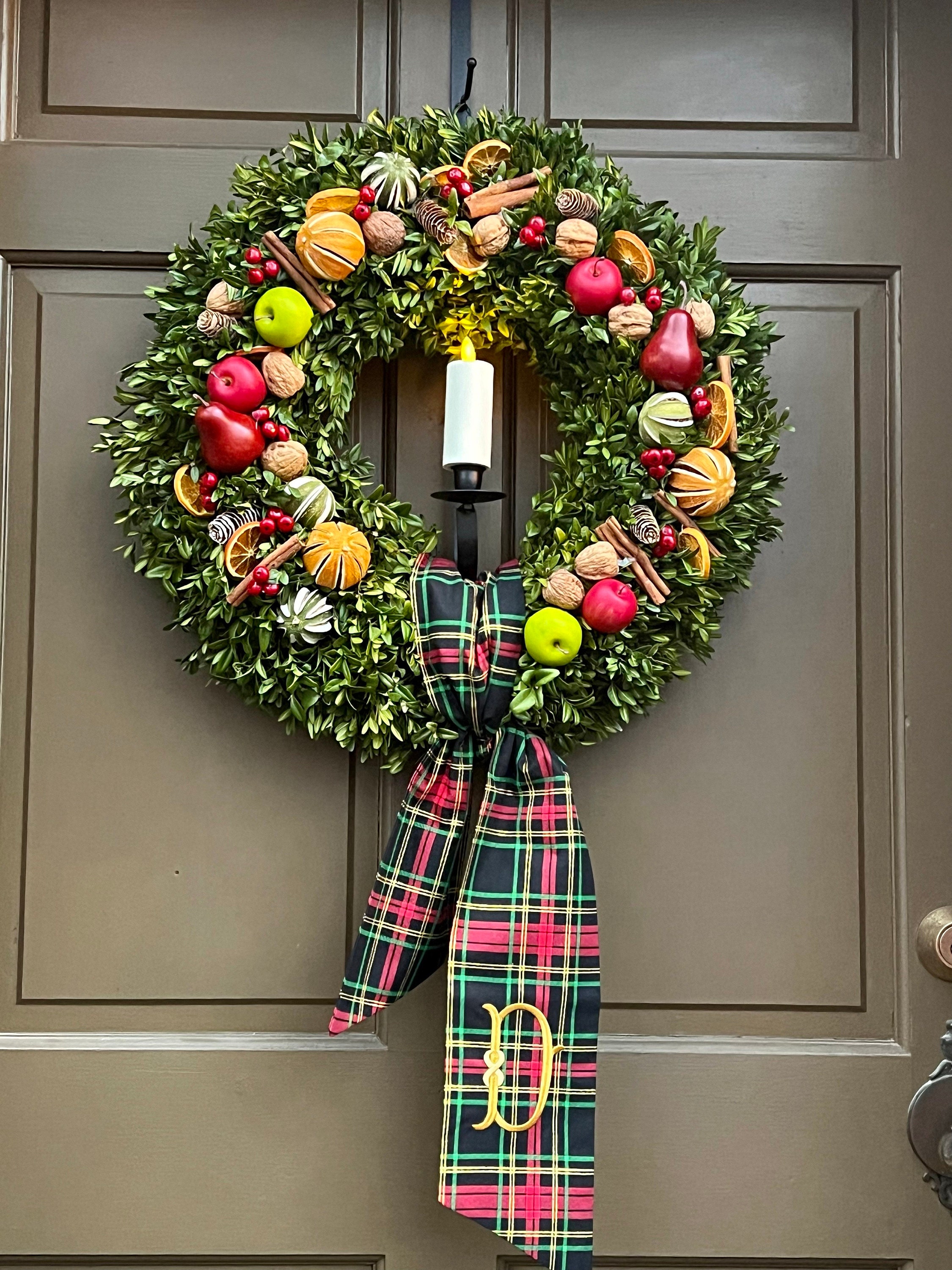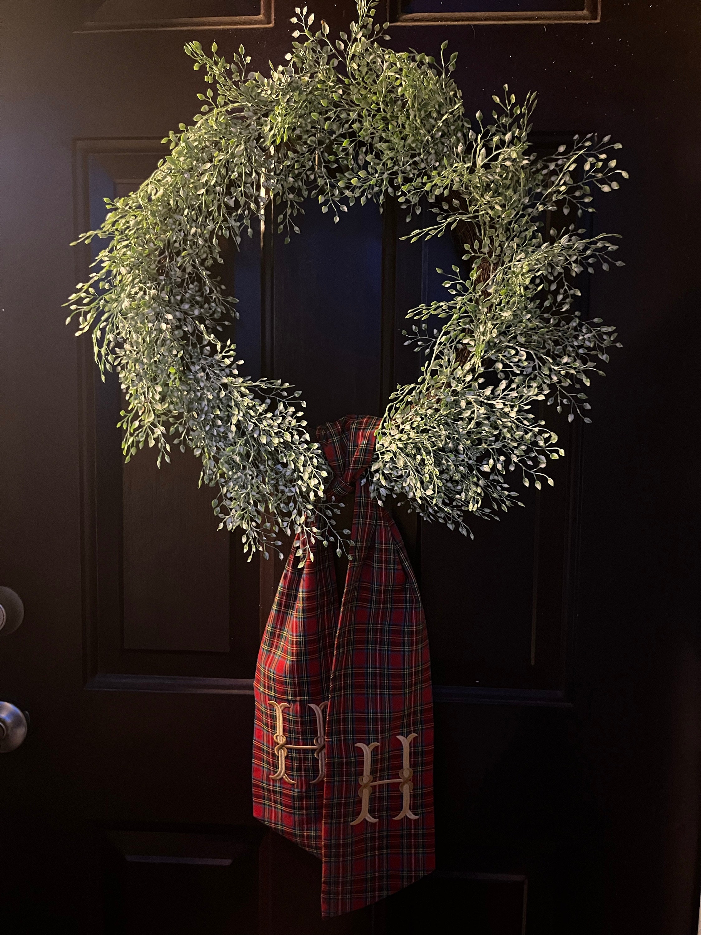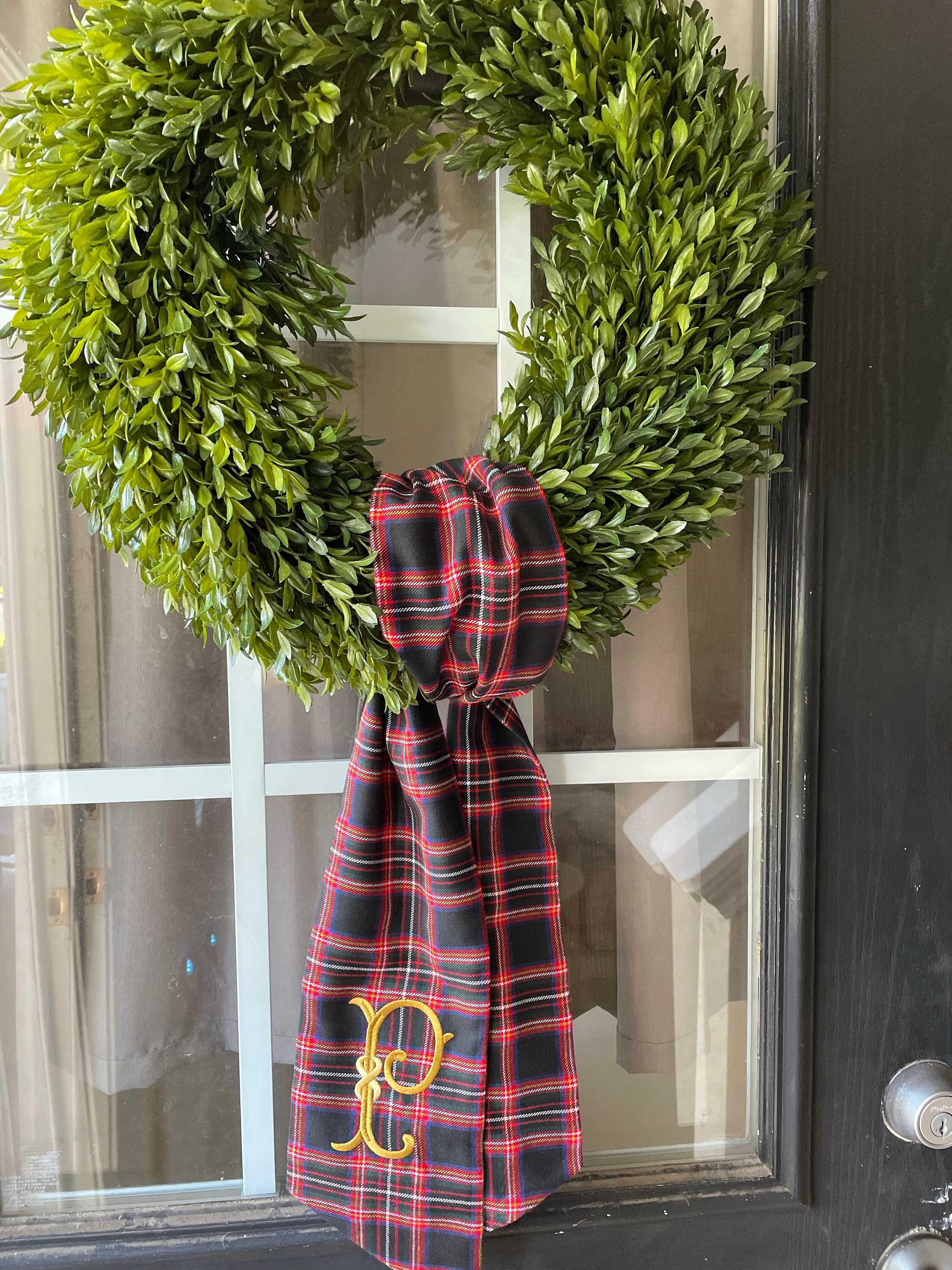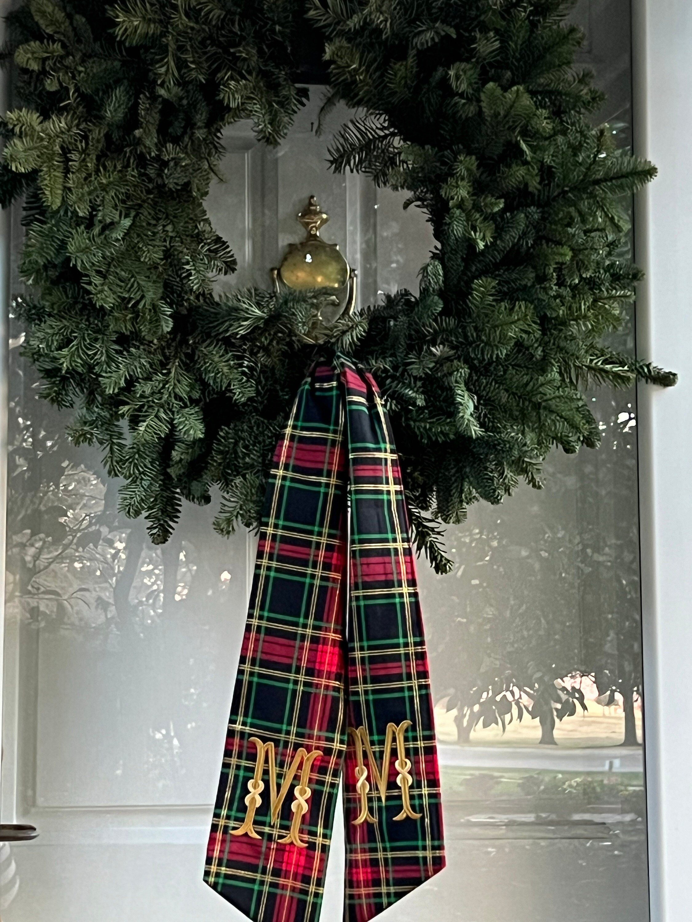🎨Unique design - This stunning Tartan Plaid Christmas Wreath Sash is perfect for any wreath on your front door, powder room, or on a mirror. The sash comes customized to your needs. Choose Single Tail Monogram or Double Tail Monogram. Single Tail Monograms have the embroidered Monogram on one tail only. Double Tail Monograms have the embroidered Monogram on BOTH tails.