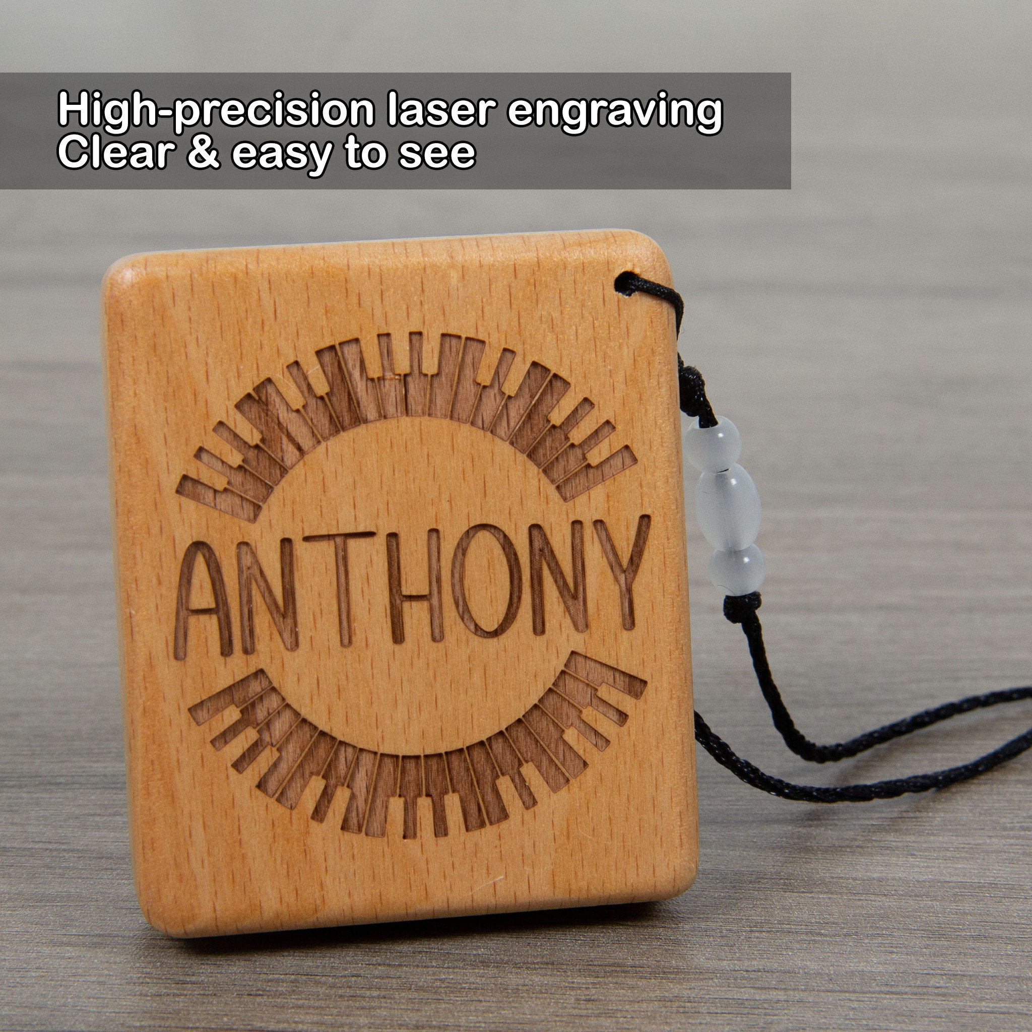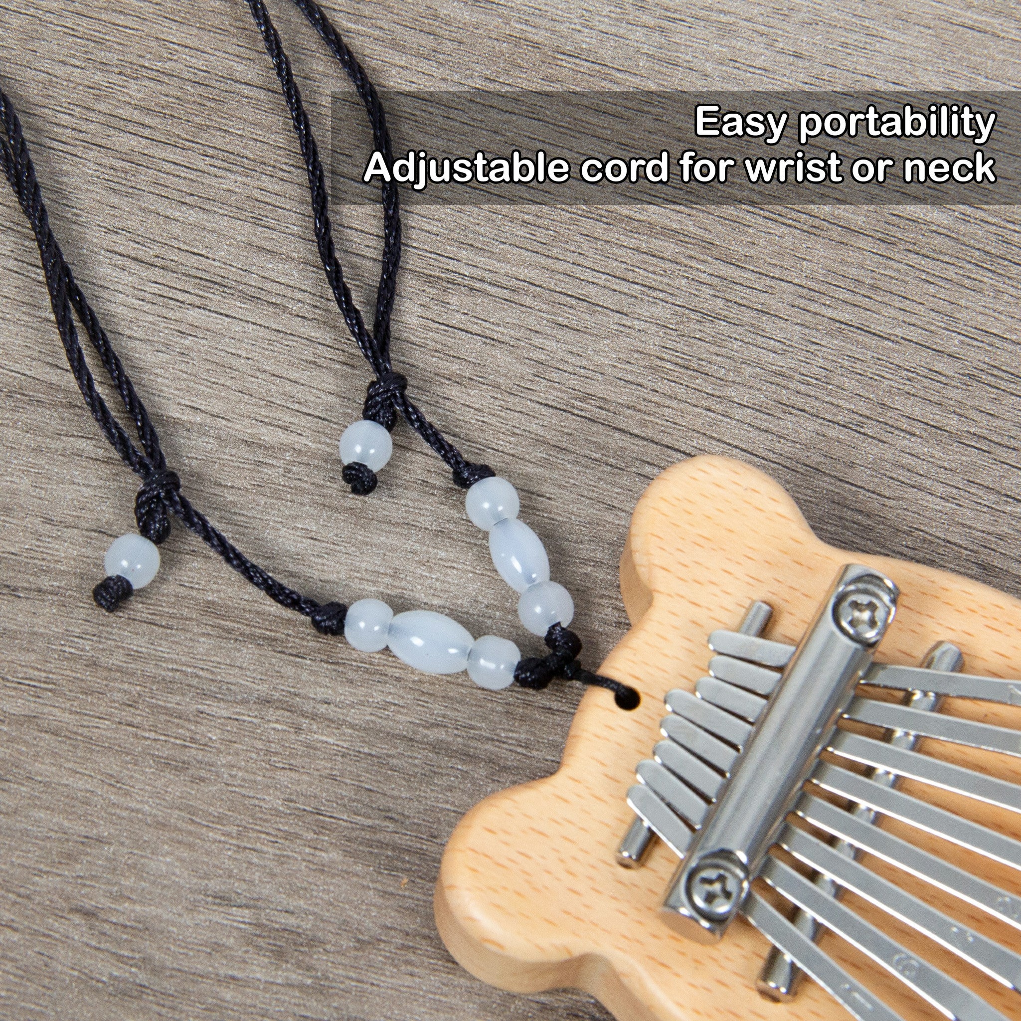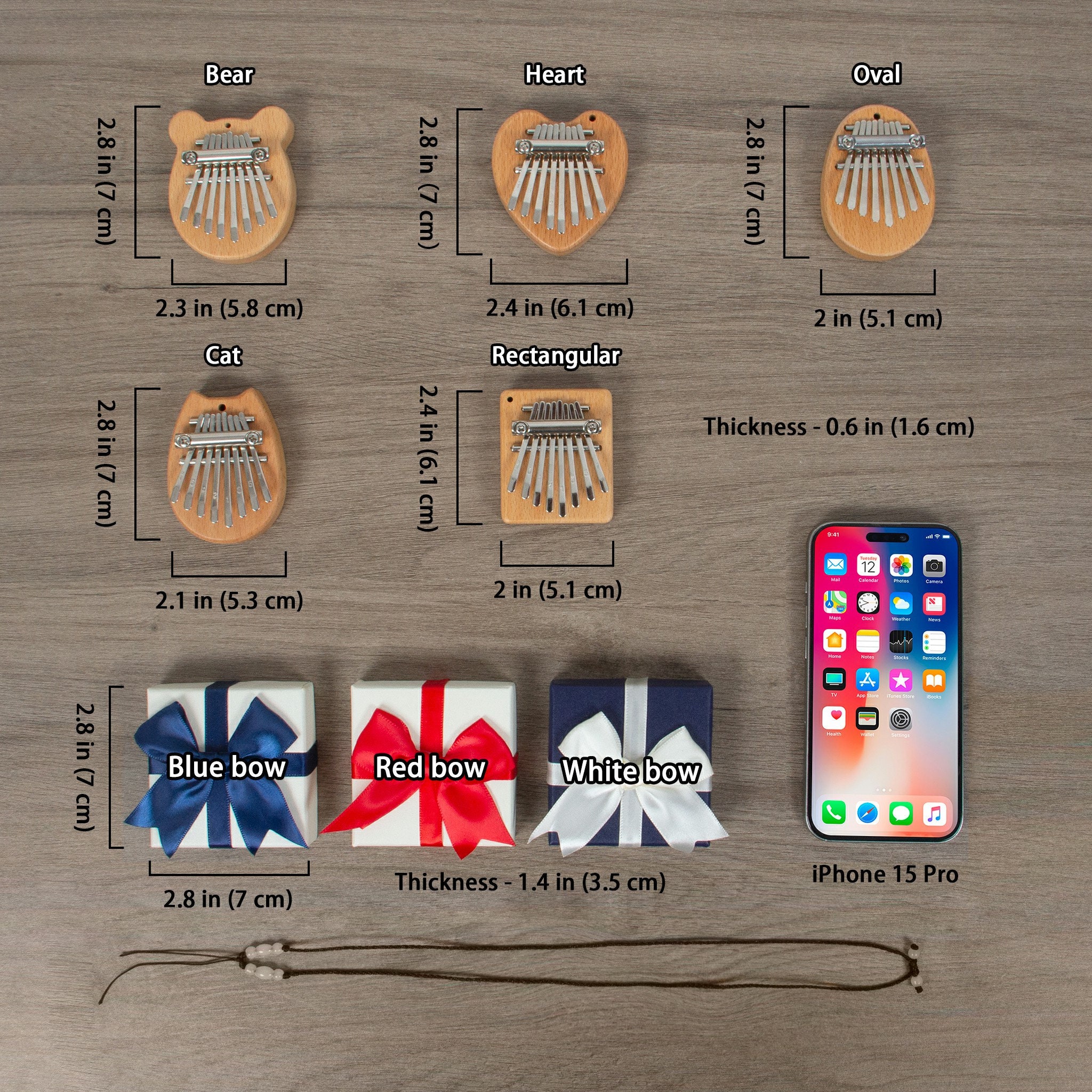 Unique design - Discover the joy of music with our Custom Engraved Mini 8-Key Kalimba Thumb Piano, crafted from high-quality beechwood for a smooth and durable finish. Designed for easy portability, it features an adjustable black cord for wearing on your wrist or around your neck. Available in five charming shapes - Bear, Heart, Oval, Cat, and Rectangular - this thumb piano is perfect for creating melodies on the go.
