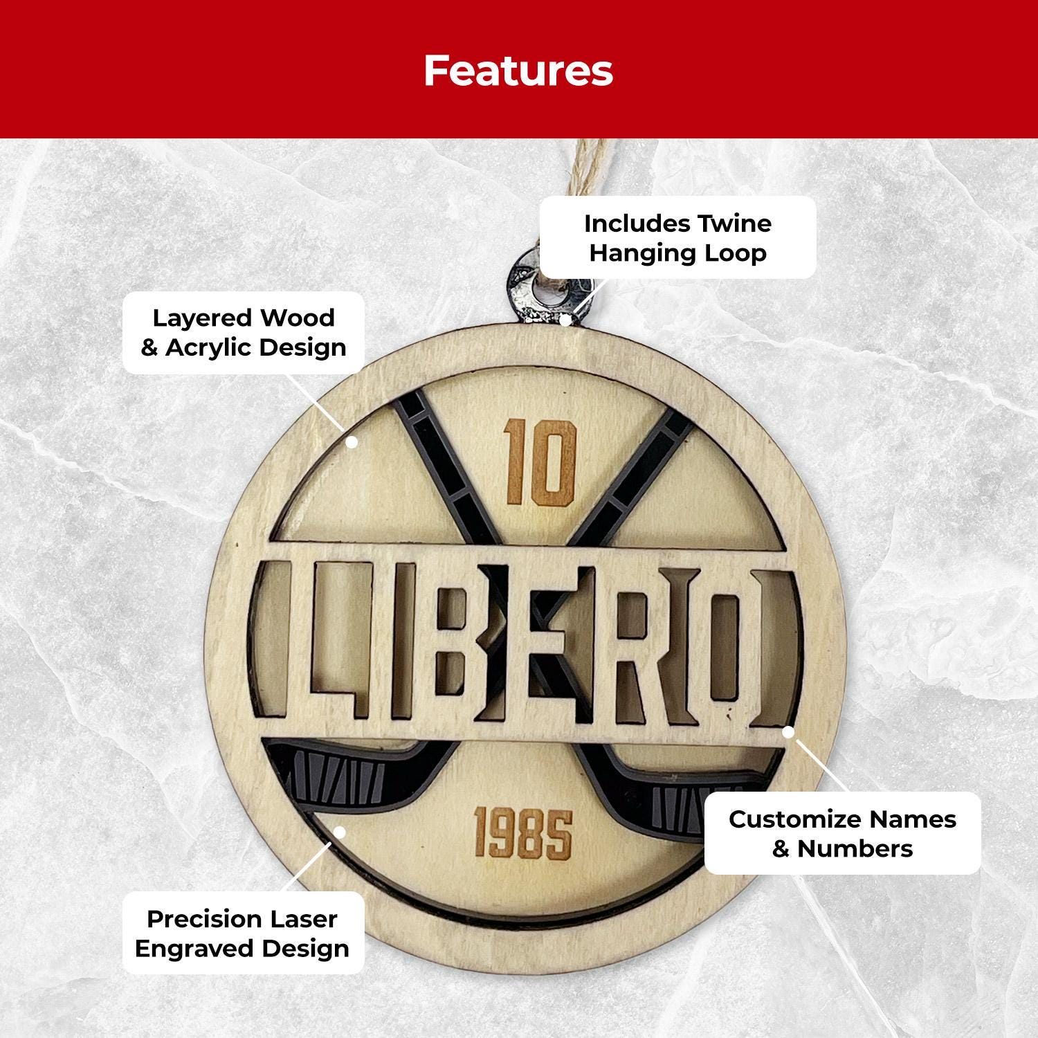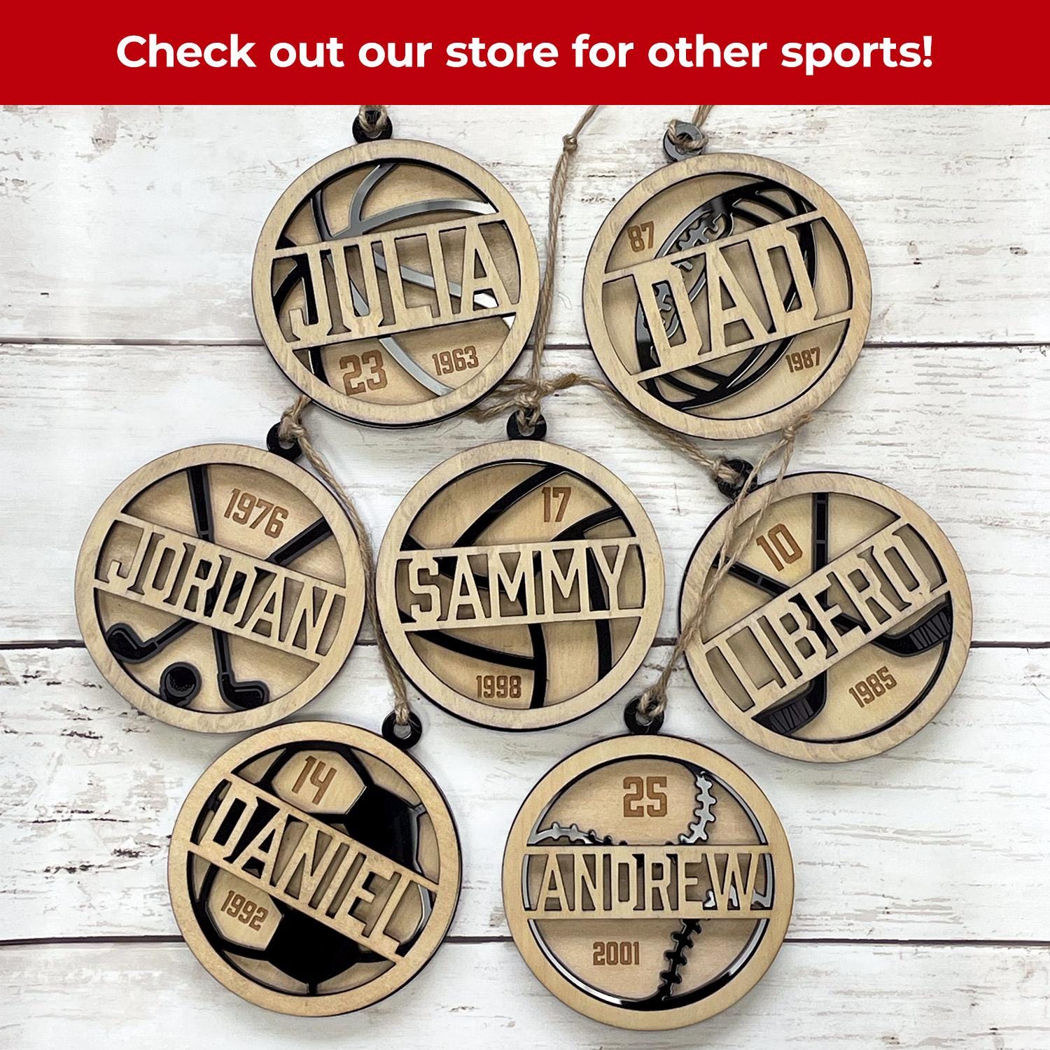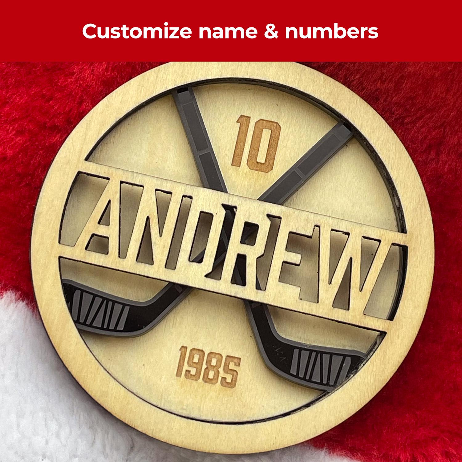 Celebrate the love for Hockey with this Personalized Hockey Ornament, ideal for fans and players of all ages. Expertly crafted from high-quality wood and custom engraved, this unique ornament is perfect for Christmas, as a gift for young athletes, or as a keepsake for seasoned Hockey lovers. Each ornament can be personalized with a name, jersey number, or team, creating a truly one-of-a-kind piece that reflects the spirit of the sport.