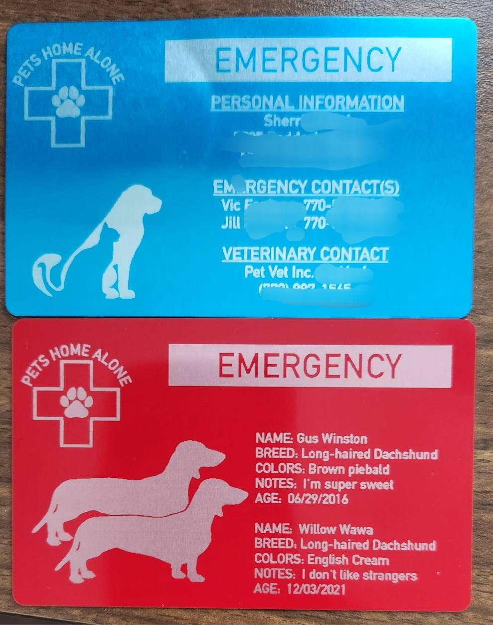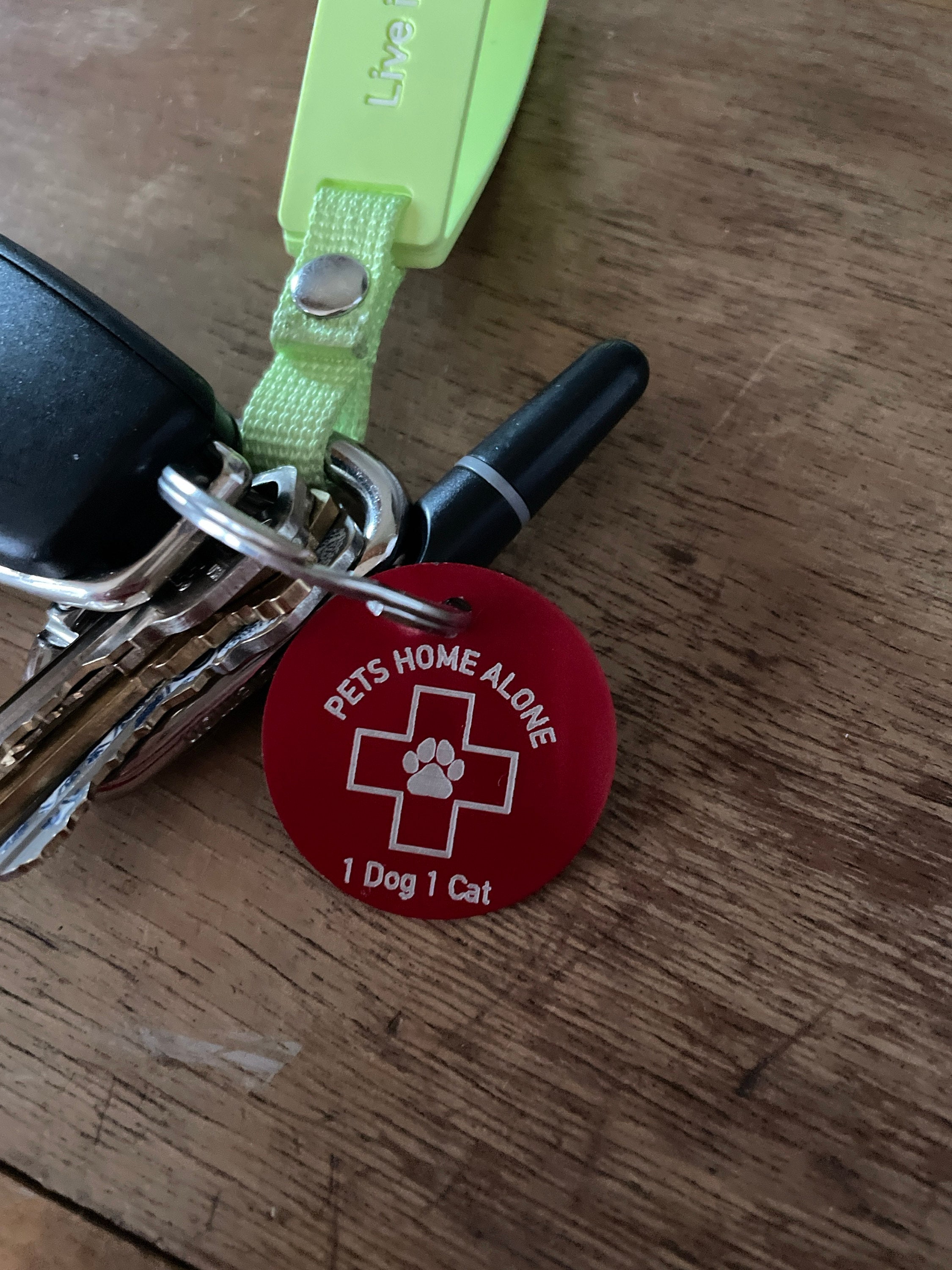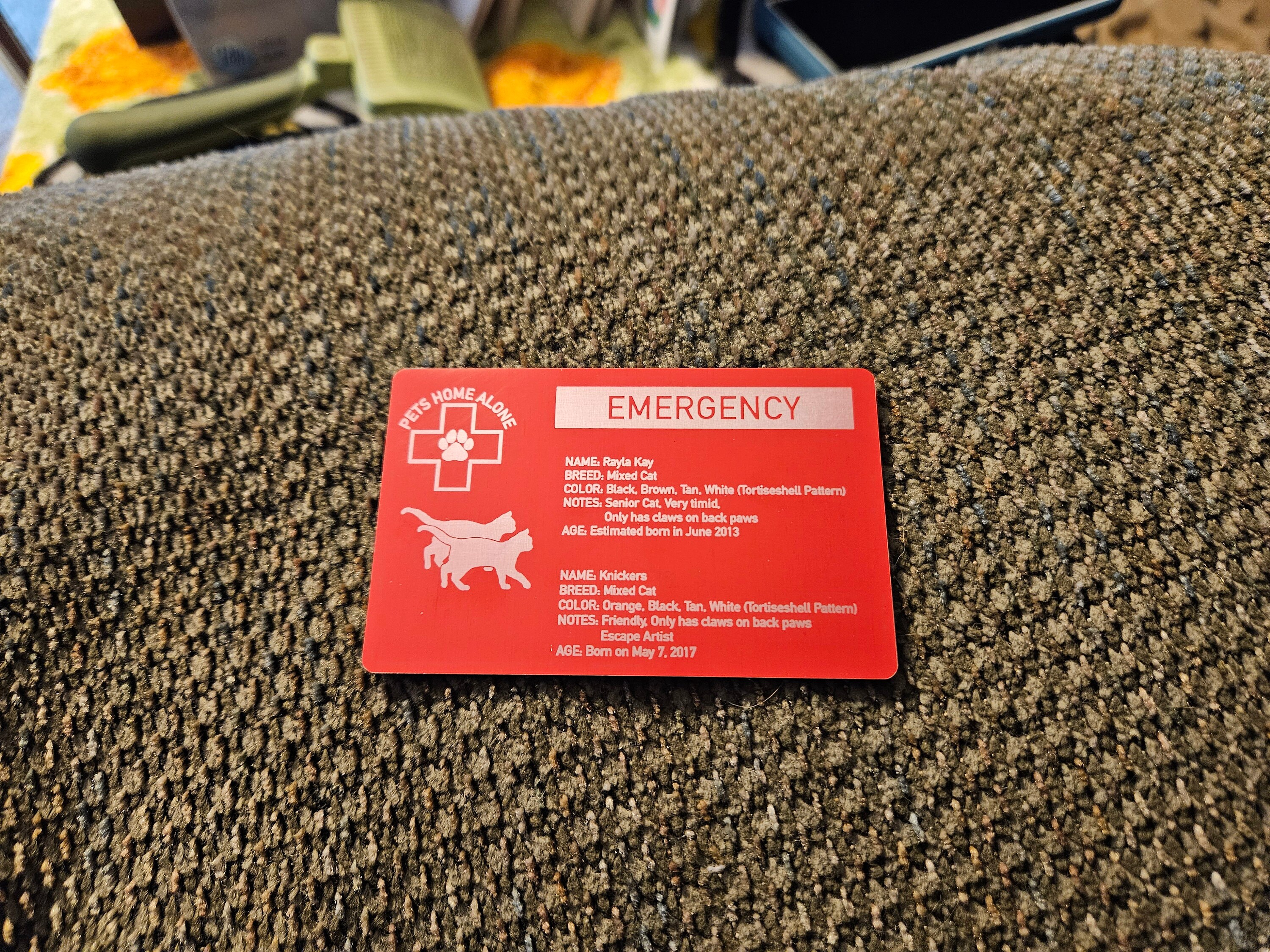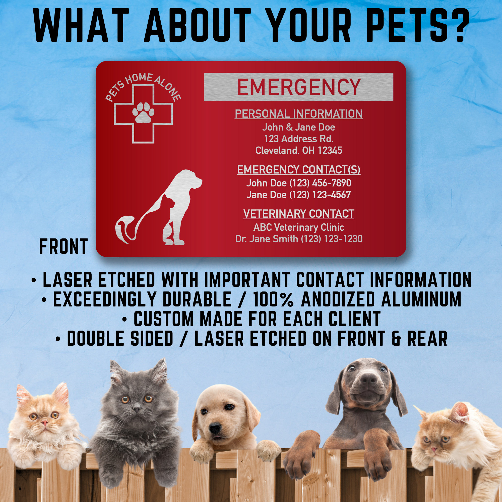 Keep your furry friend safe with our Anodized Aluminum Emergency "Pets at Home" ID Card. Designed with pet owners in mind, this card provides important information about your pet in case of an emergency. Made of durable anodized aluminum, this card is available in 2 attractive colors to suit your style. The accompanying anodized aluminum key tag ensures that this vital information is always within reach. Customizable to include your pet's name, emergency contact information, and any medical needs, this ID card is an essential tool for responsible pet ownership. Keep your pet protected and order yours today!