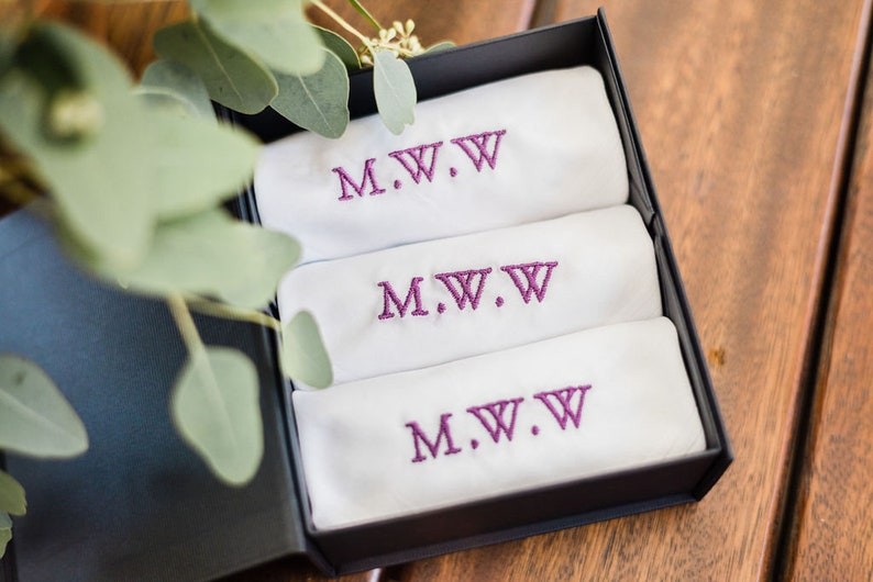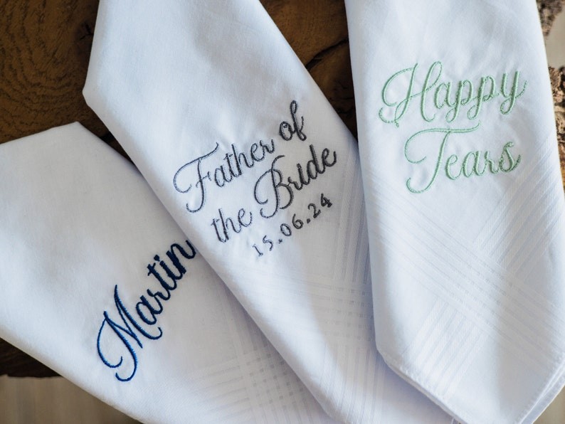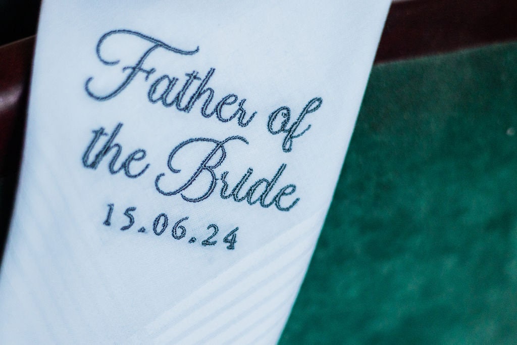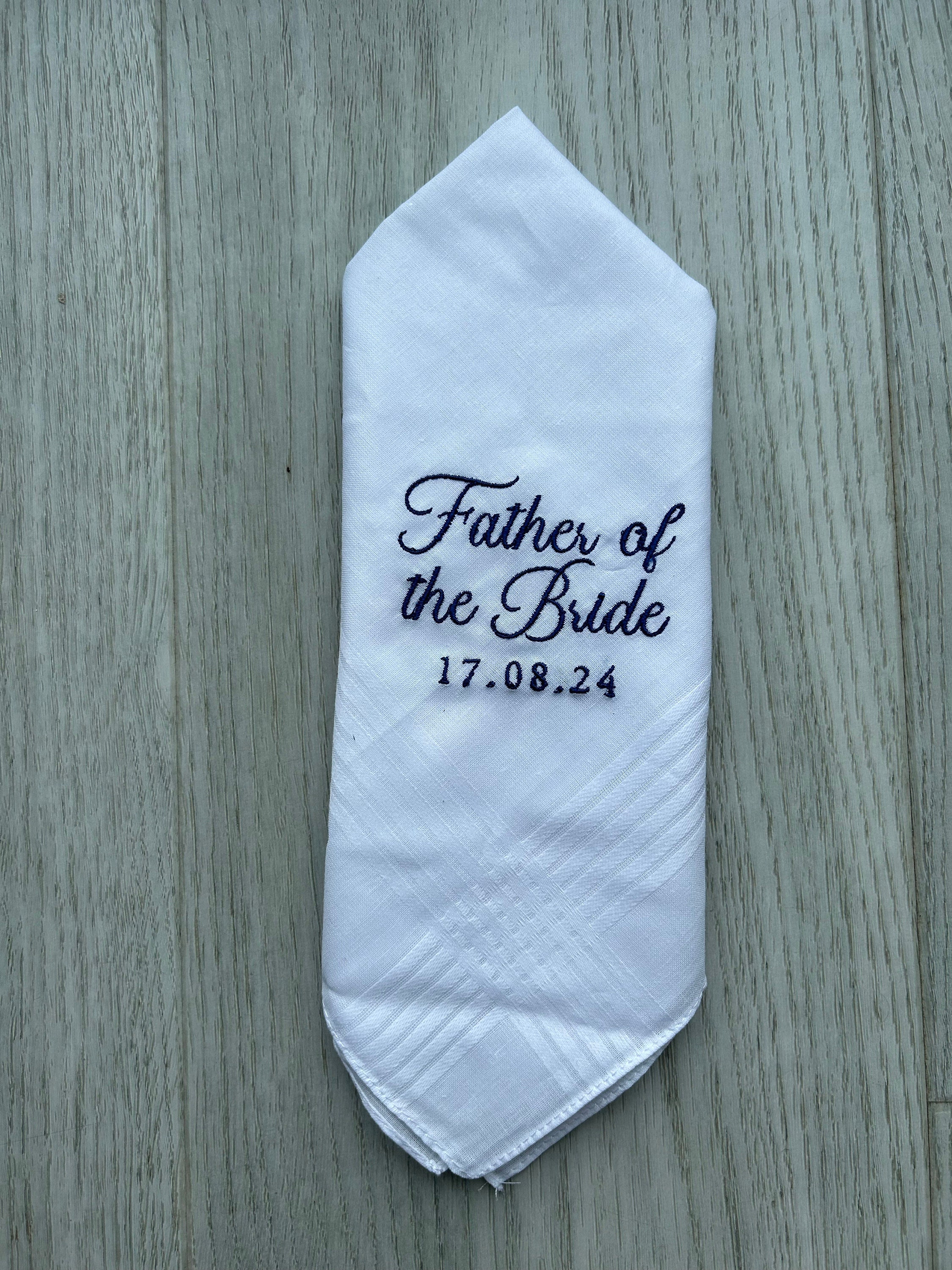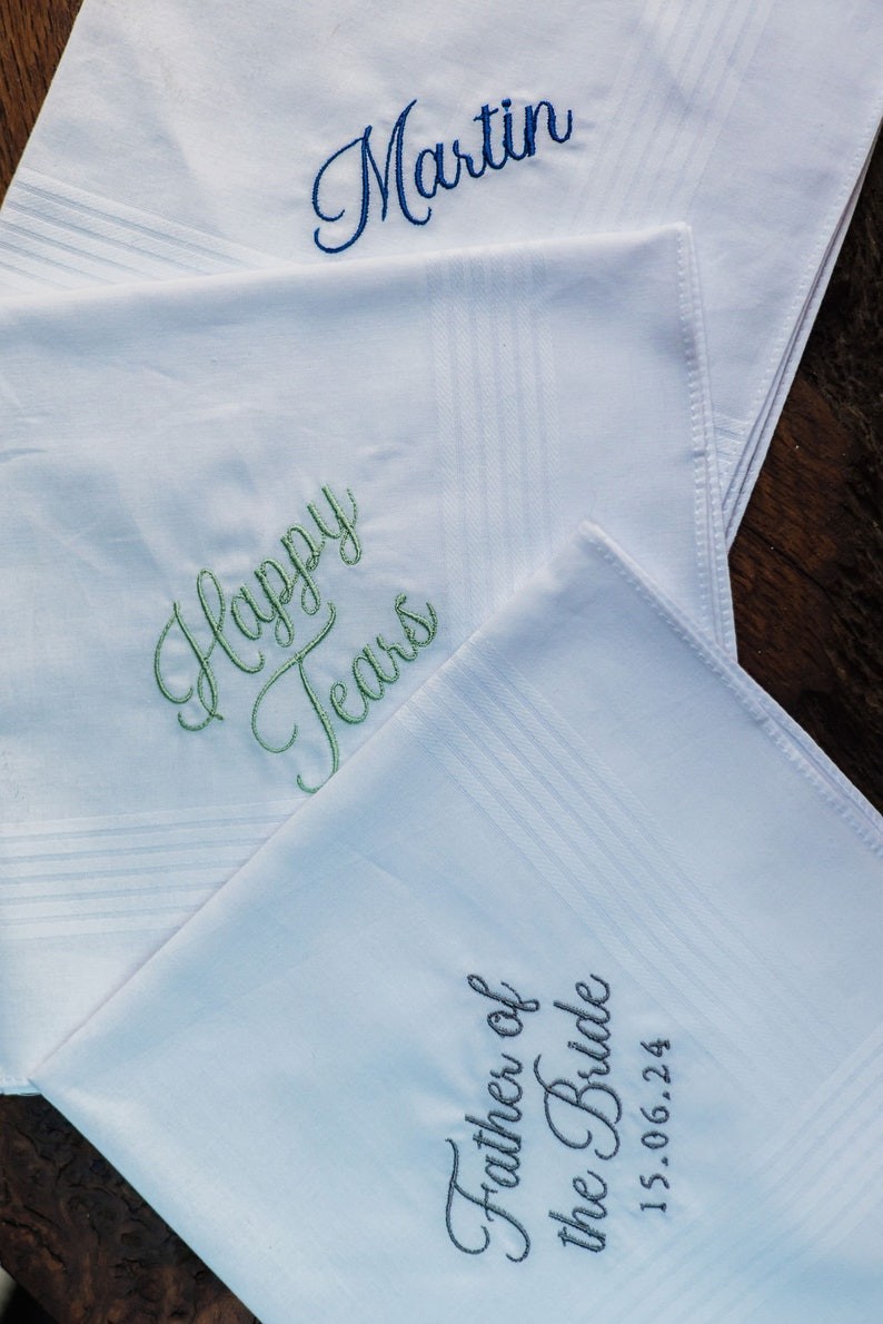 Embroidery is our favourite way to personalise a material product and we look forward to expanding our range of embroidered gifts very soon. We complete the detail on these handkerchieves with a simplistic, elegant and modern design. The handkerchief will be a special keepsake from your wedding day for years to come. Not only is the embroidery completely permanent, but the most wonderful way to add detail to memorable gift.
