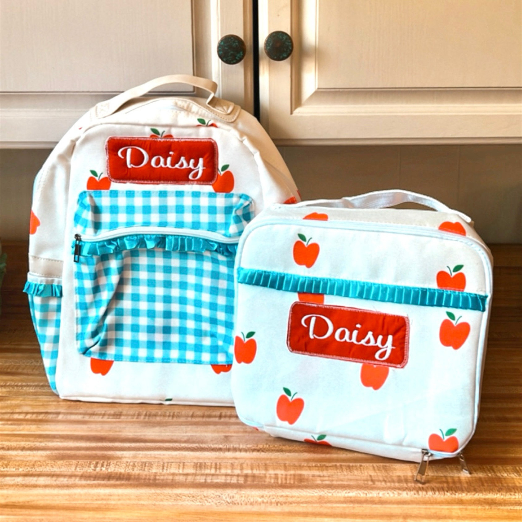 Our girls apples ruffle backpacks are not only adorable, but well made! They are lightweight and lined - perfect for kids! They feature a large exterior pocket on front as well as two exterior pockets. There is an additional large pocket inside for extra