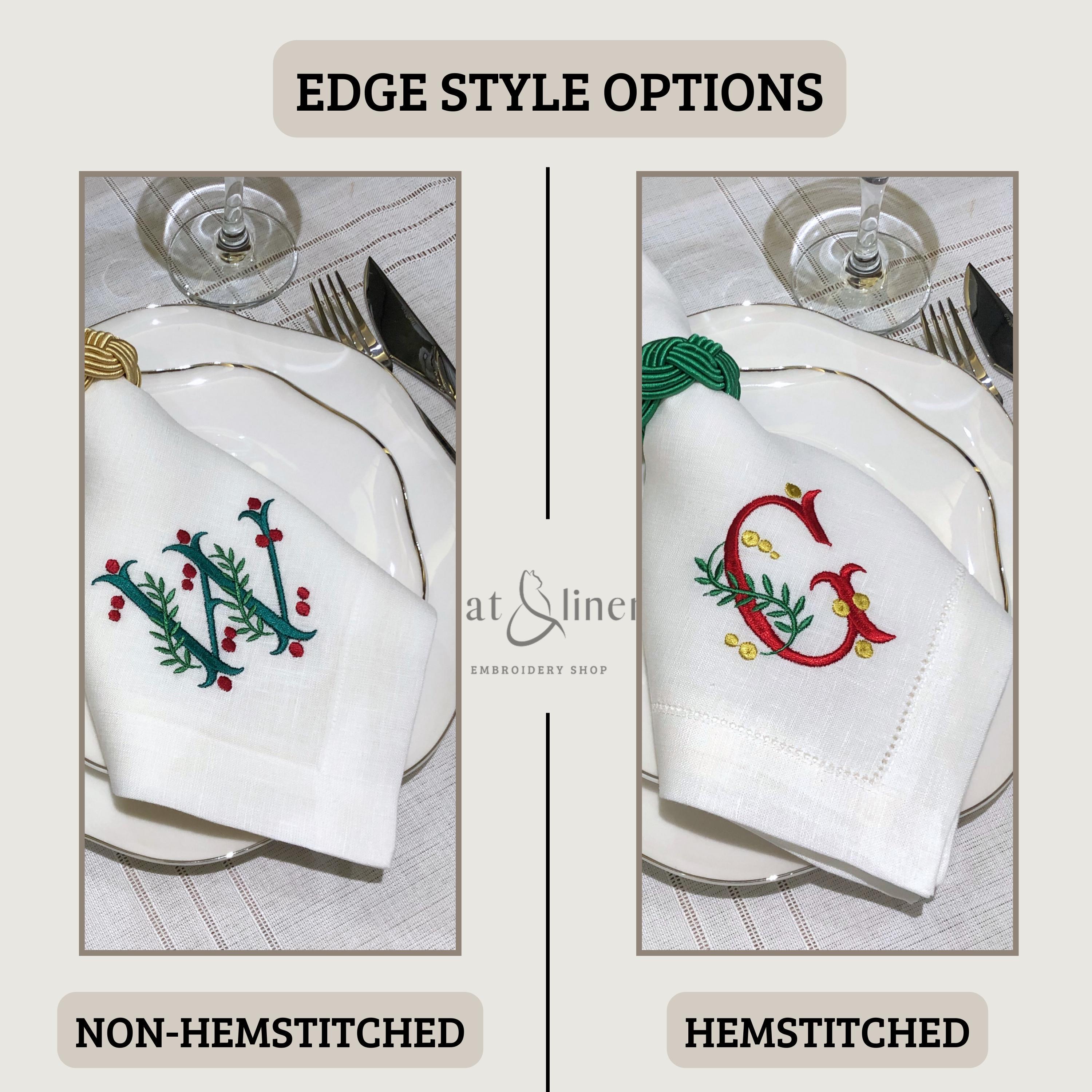 ➤We take pride in crafting high-quality embroidered linen napkins that bring luxury and elegance to your dinner table. Imagine transforming your dining experience with the elegance of our personalized linen napkins. Each napkin is meticulously crafted from the finest quality linen, ensuring a soft, luxurious feel against your skin. Customize your napkins with a monogram of your choice, adding a personal touch to every meal. Whether you're hosting a formal dinner party or enjoying a casual brunch, these napkins will elevate your table setting. Our wide range of thread colors and font styles allows you to create a design that perfectly complements your home decor. These aren't just napkins; they're heirlooms, designed to be cherished for years to come. Invest in the beauty of personalized linen and make a statement at your next gathering.