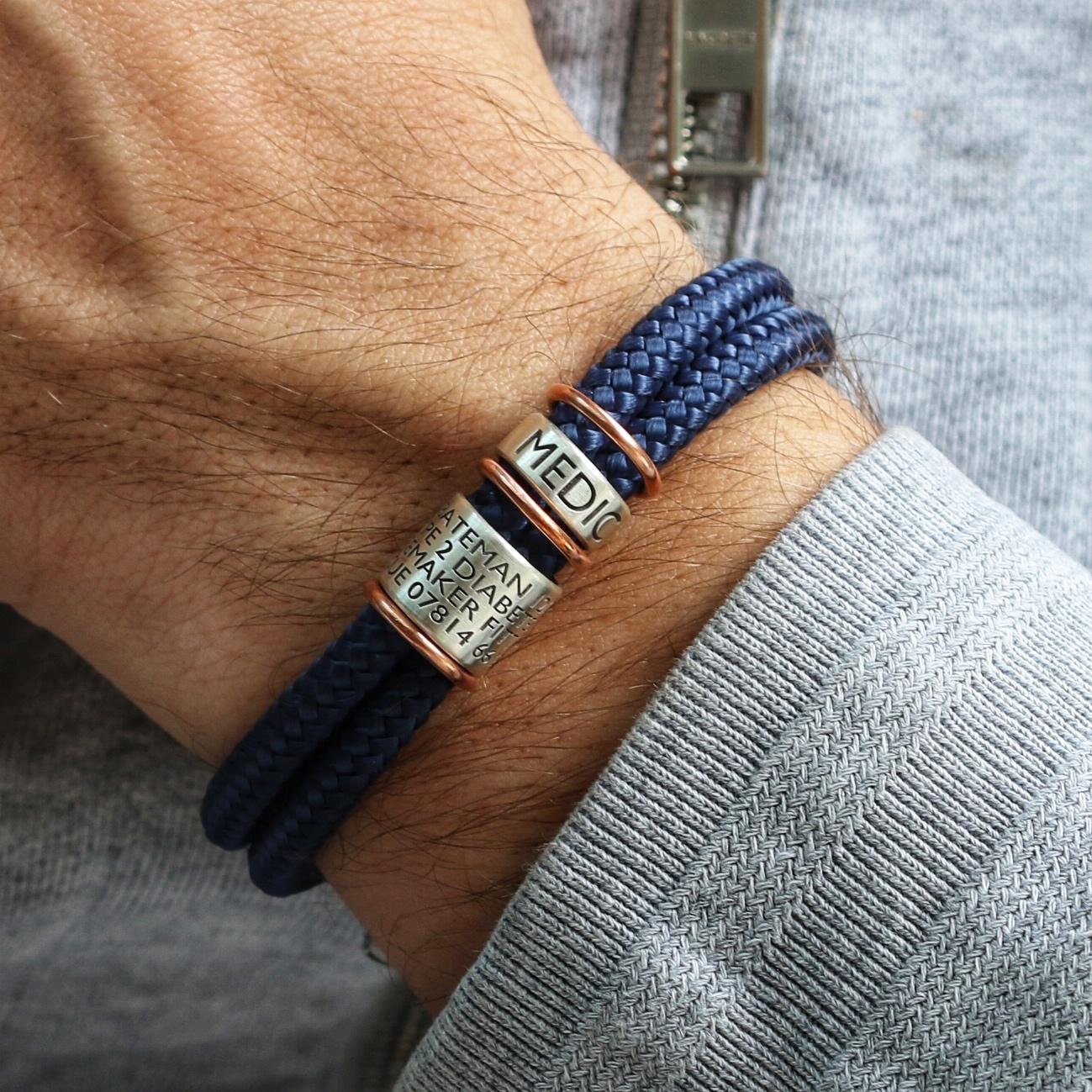 Our truly stylish navy medical alert bracelet makes an excellent companion for any occasion.