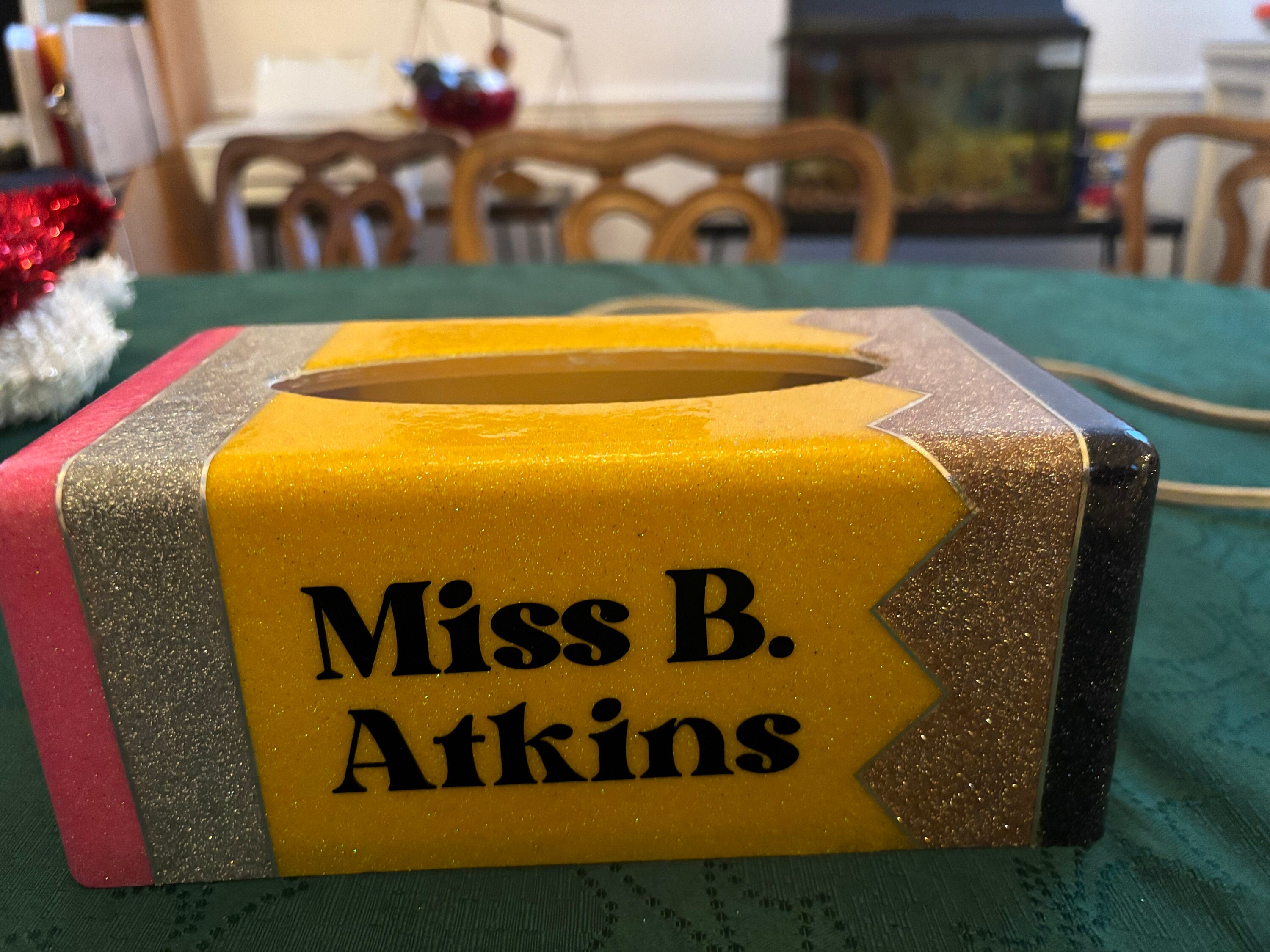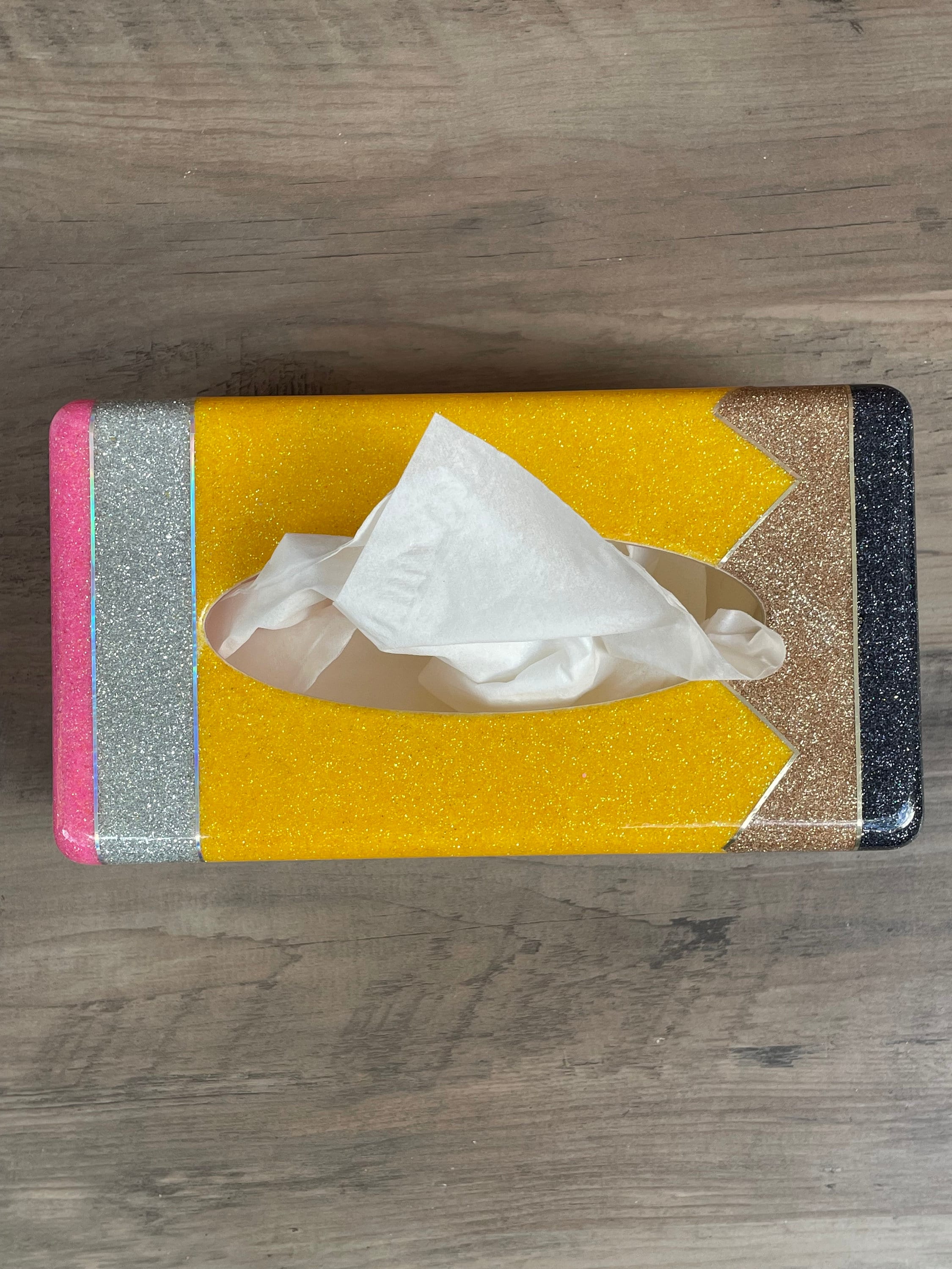 The bottom of the tissue box will not have glitter, but a matching paint color.