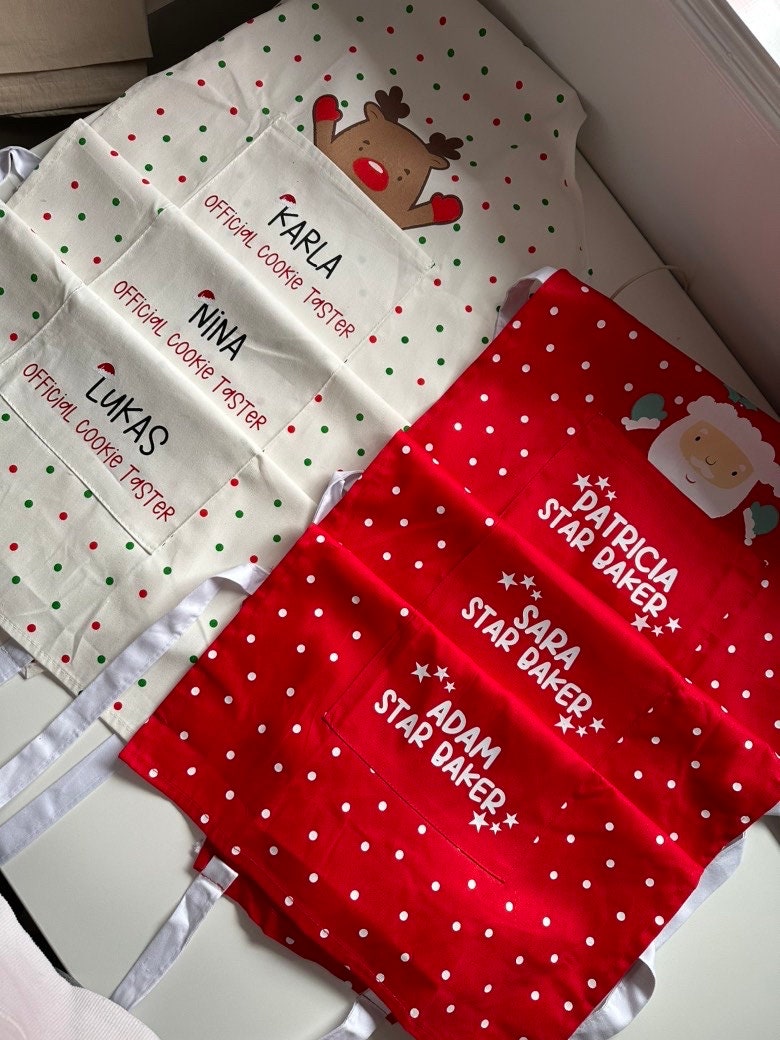These cute little Christmas aprons are perfect for little Christmas bakers and chefs, artists, or anyone who loves to get creative and messy and a must have for this Christmas season.