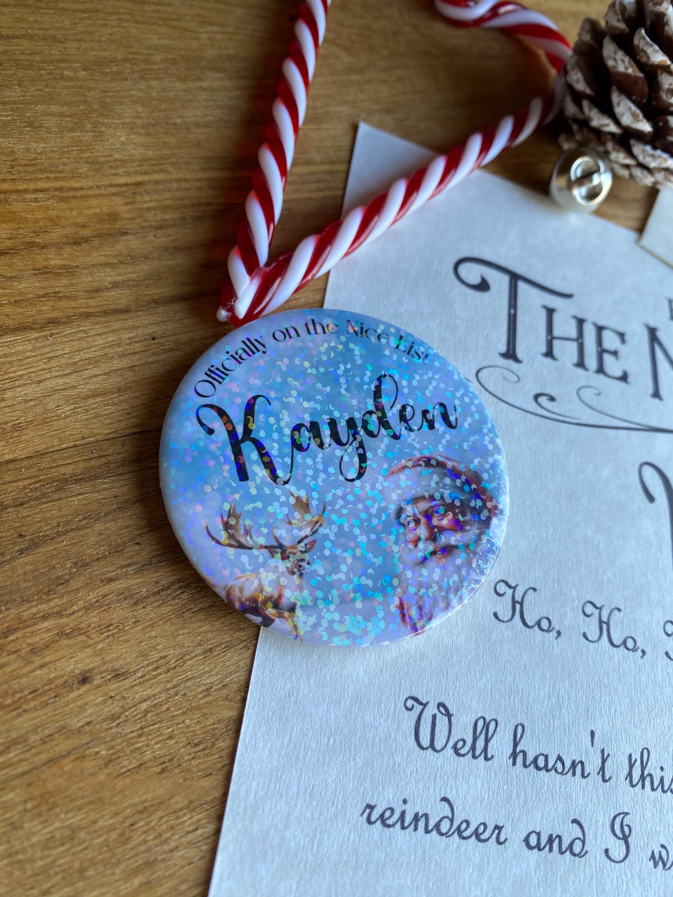 A complete set includes: a badge, a letter, an envelope, and a bauble.