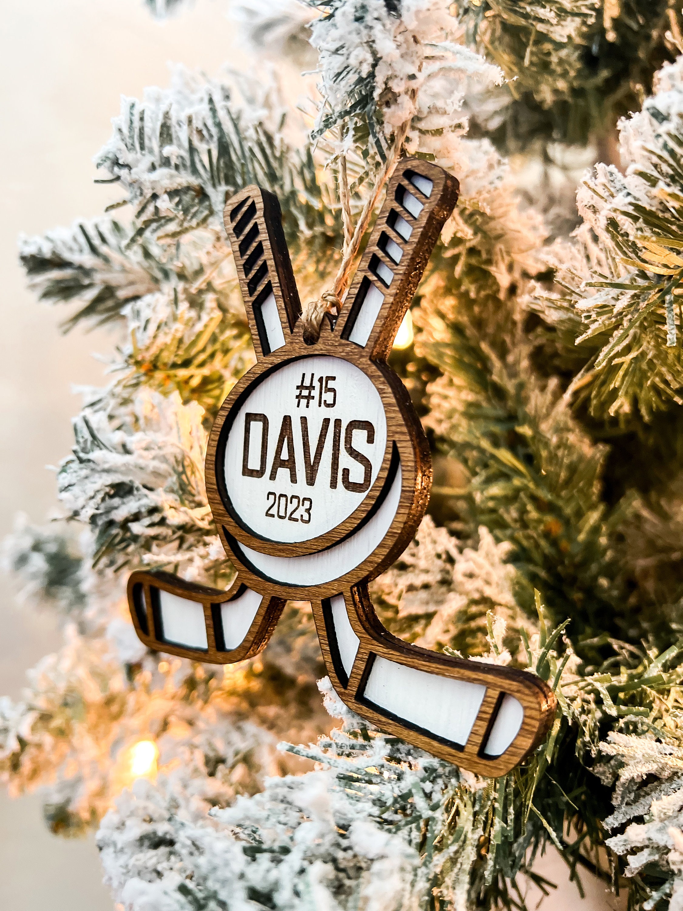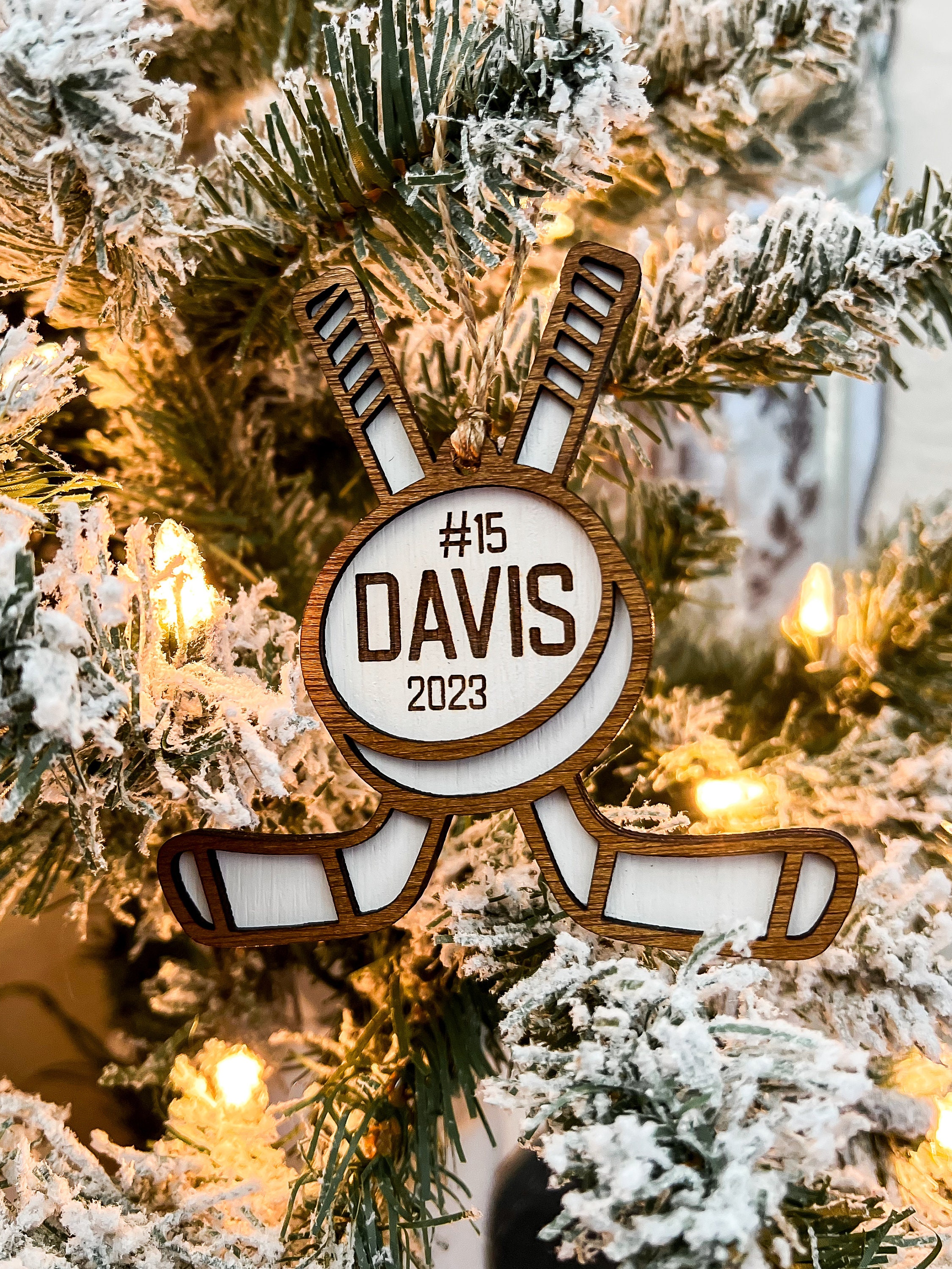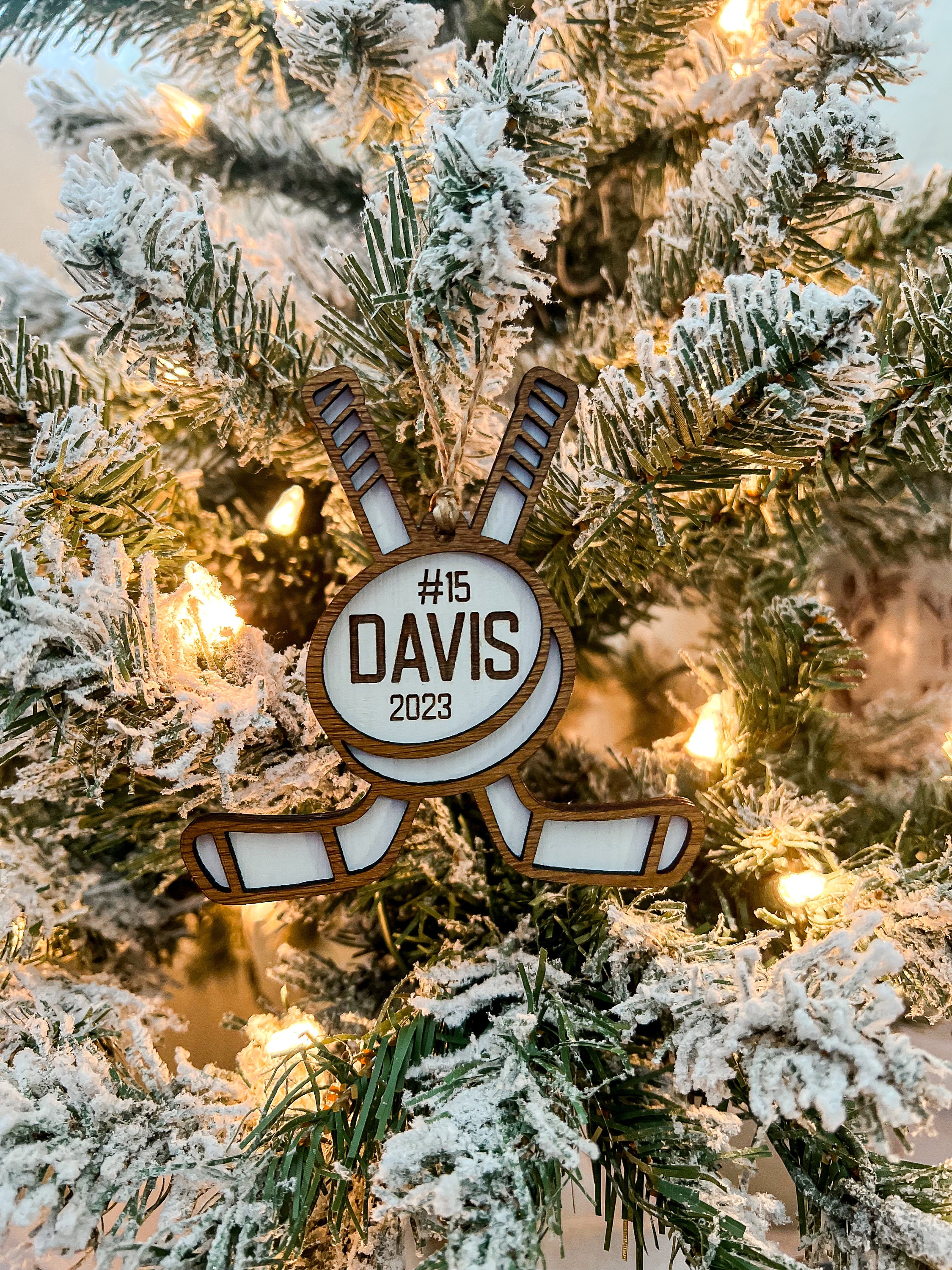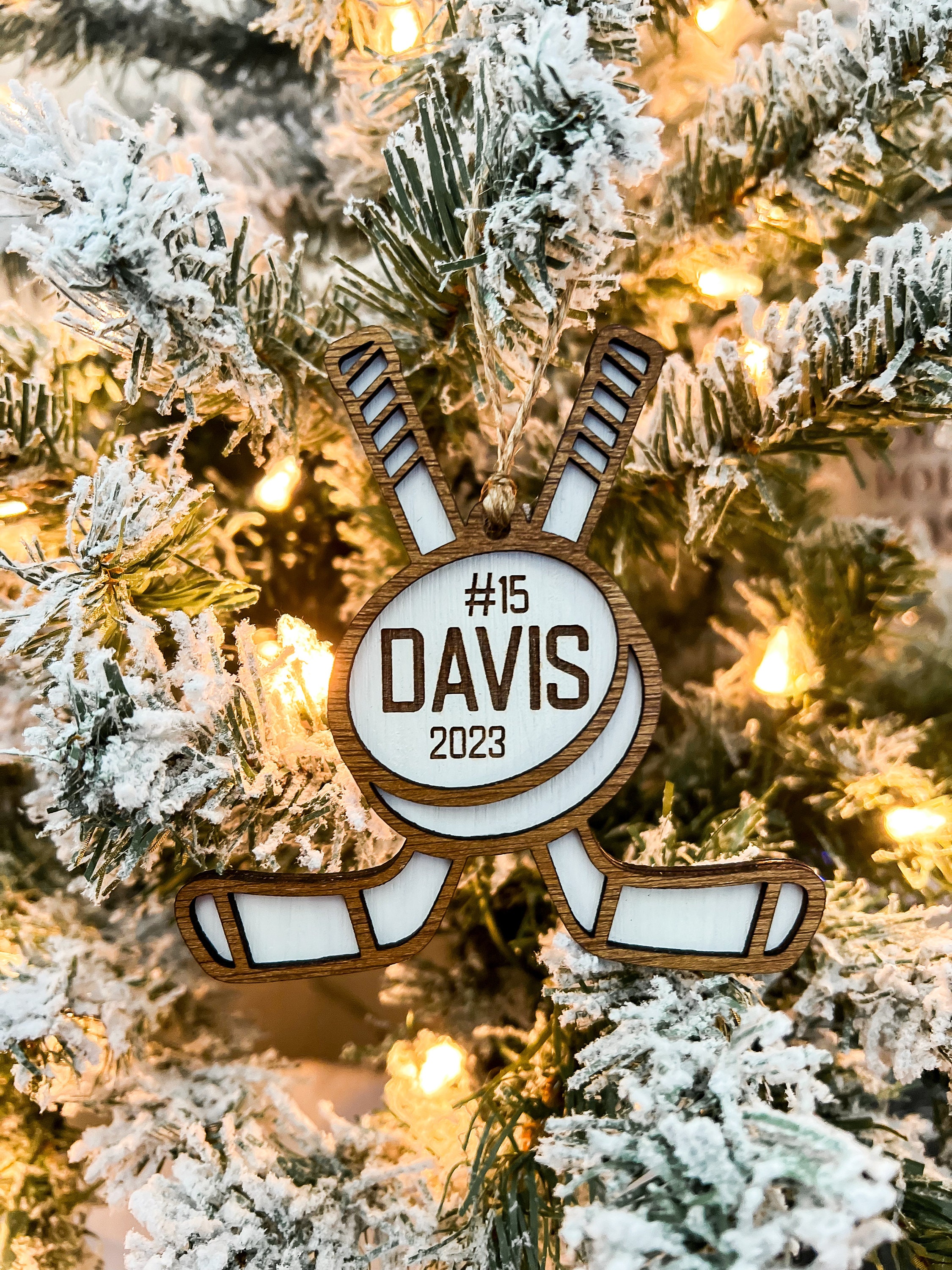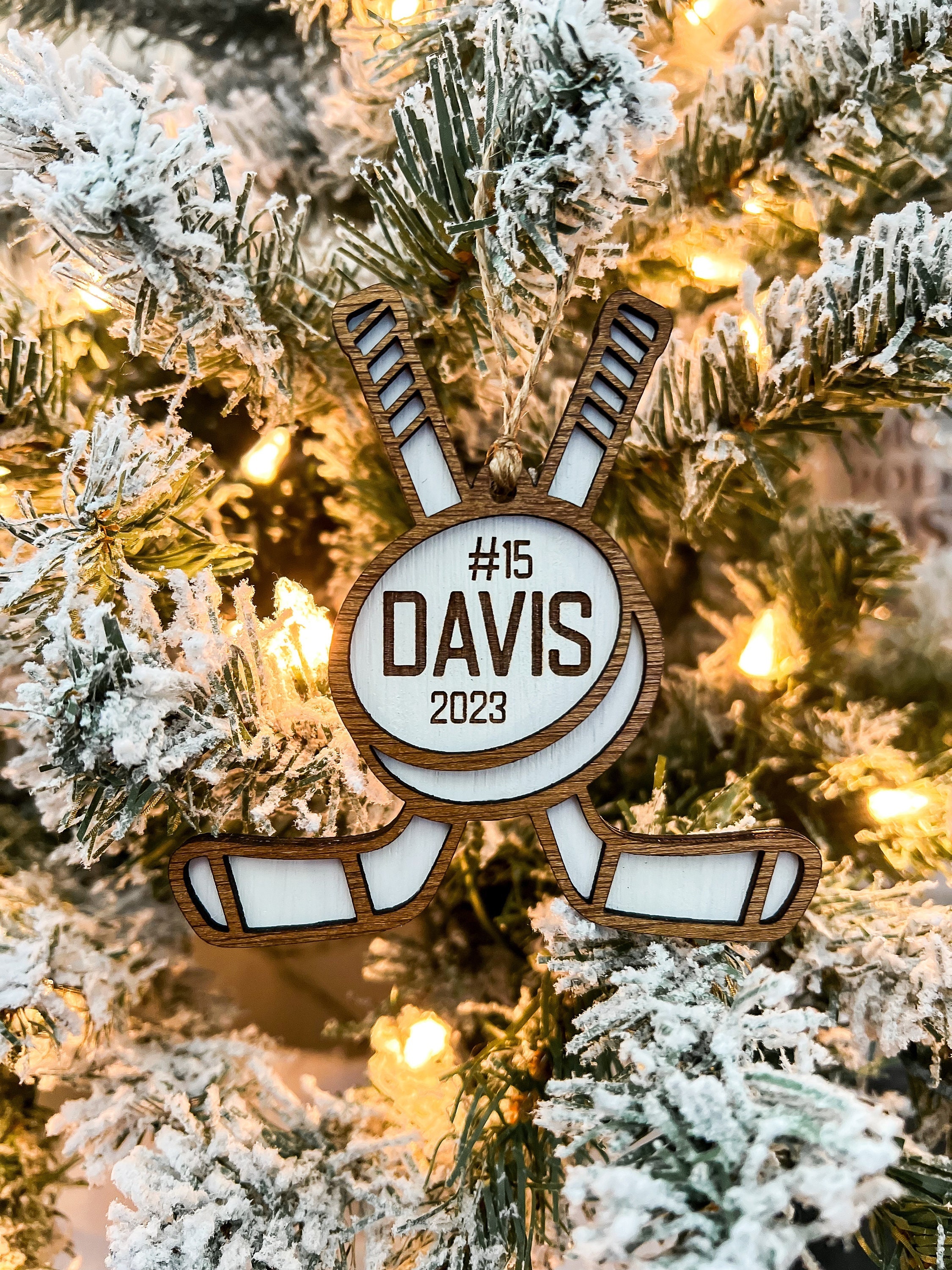 Perfect personalized hockey stick and puck ornament for those hardcore hockey players and fans in your life! Junior hockey leagues can celebrate their teammates with this personalized ornament to show their love for the sport.