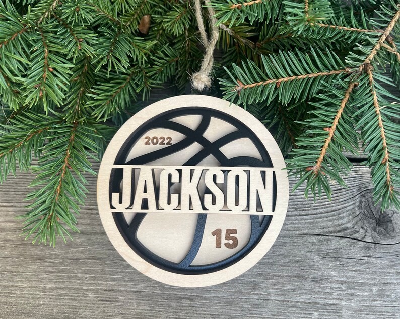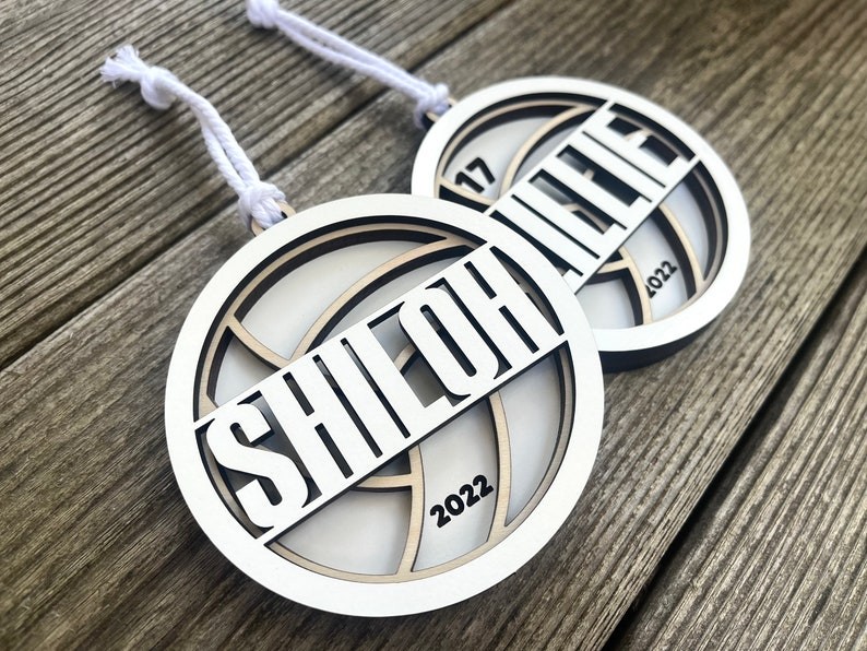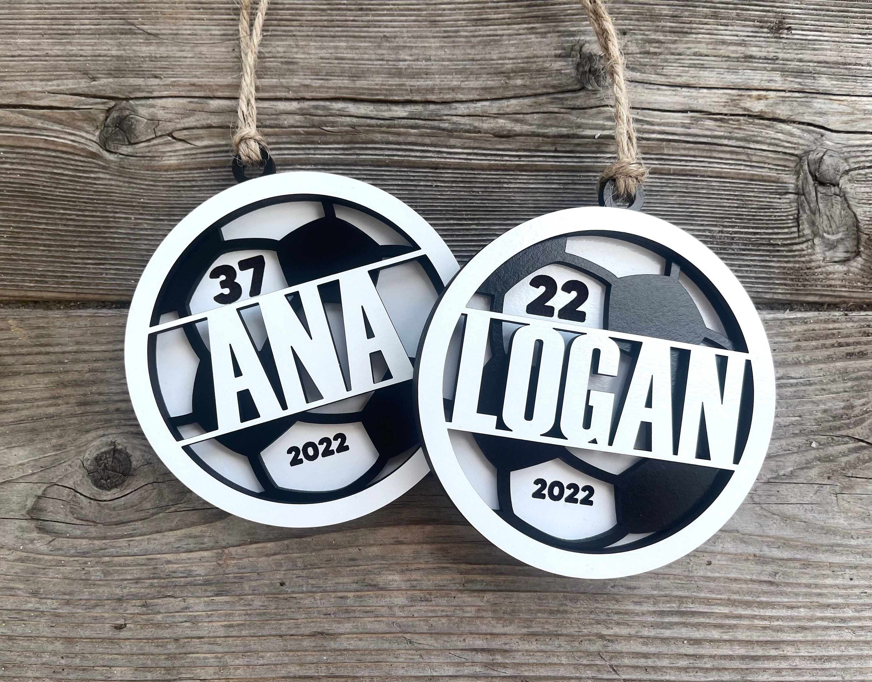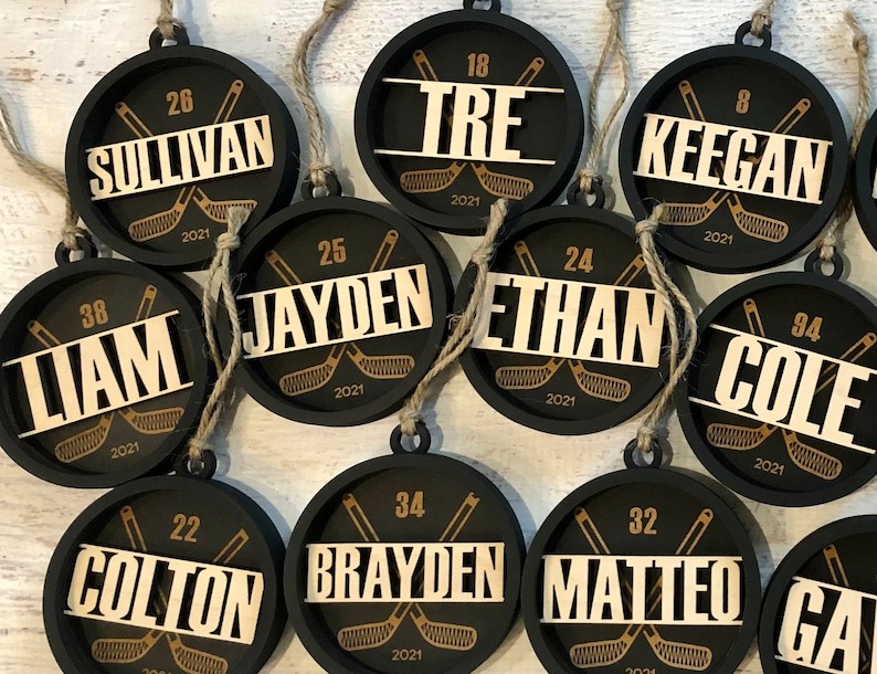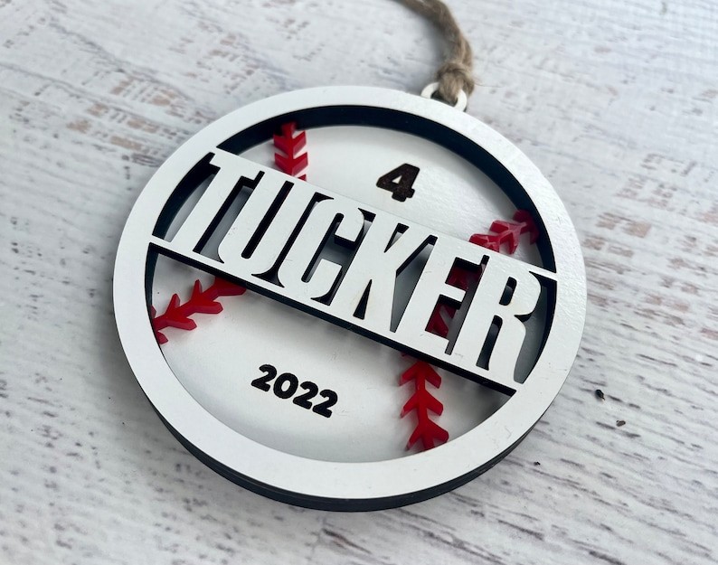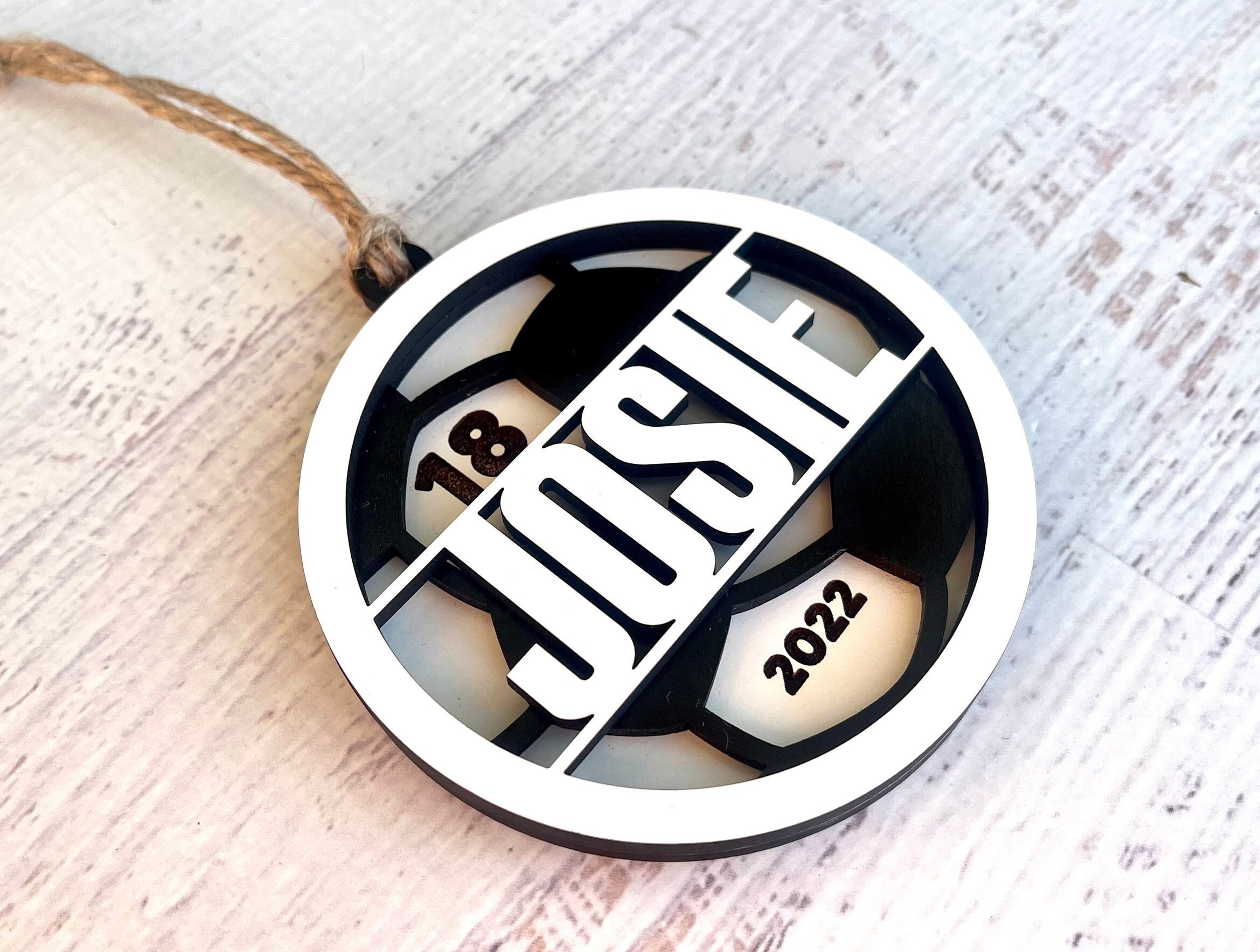 Made of 3 layers MDF with your name cut out. The background layer can be engraved with both the year and jersey number or left blank. The middle layer has a ball pattern. The top layer will have a cut out of the ball player's name.