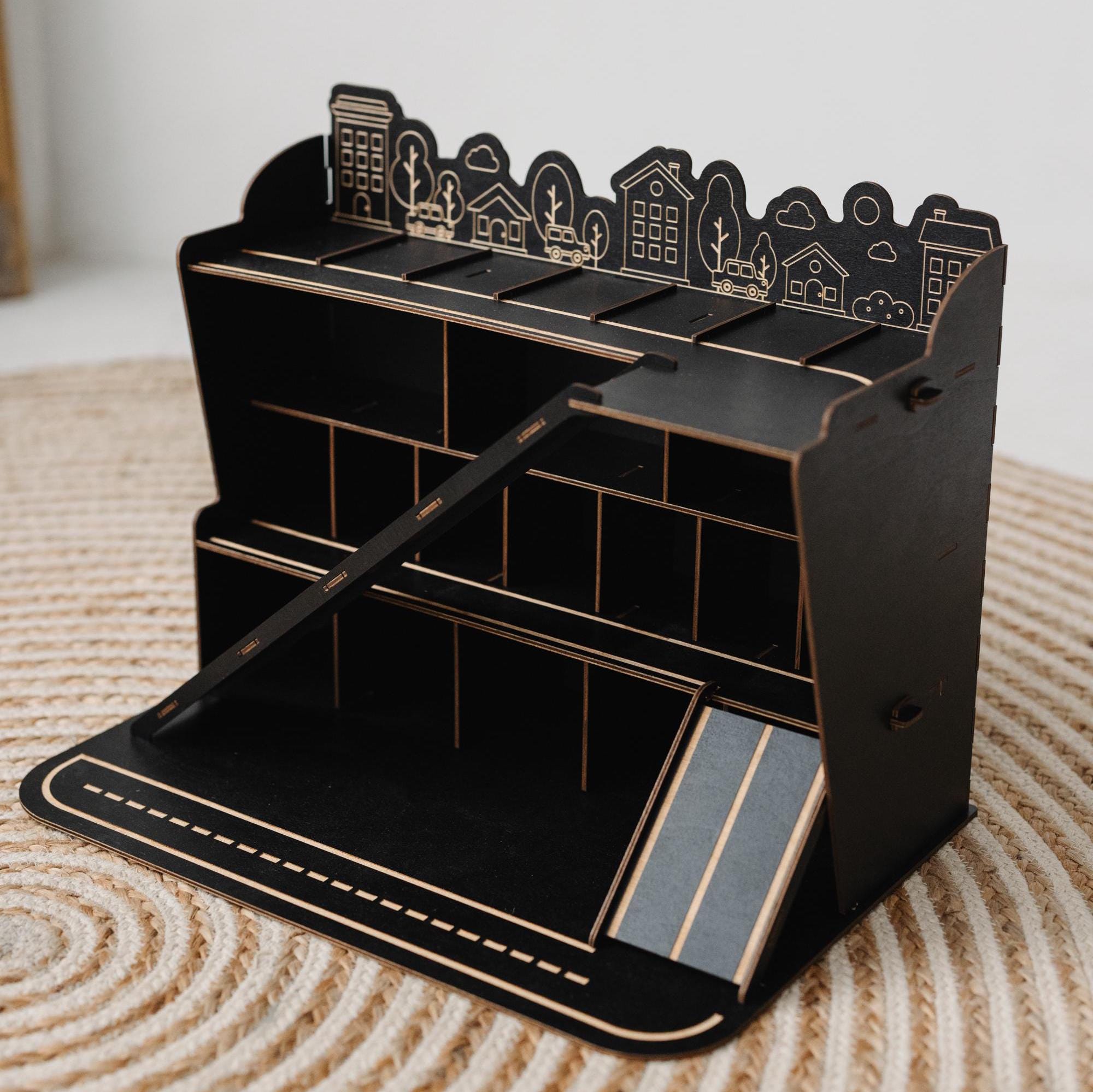 • Stylish Design: Each parking garage is handcrafted, making it a unique and aesthetically pleasing addition to any playroom, nursery, or living space.