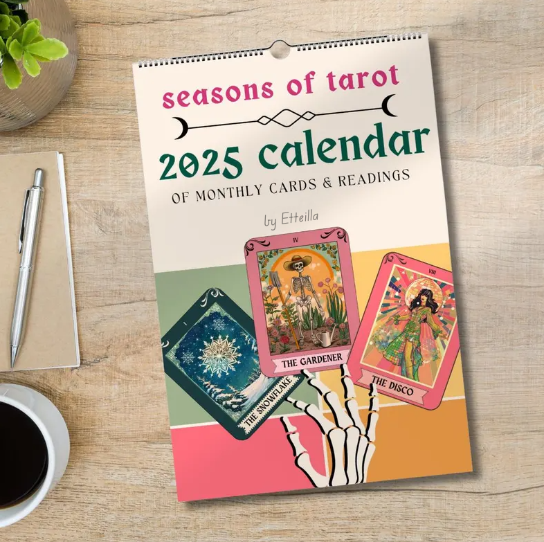 Each month showcases a stunning tarot card that captures the unique energy and themes associated with the seasons, offering inspiration and guidance for your journey ahead. The 2025 Seasonal Tarot Card Calendar serves not only as a functional wall calendar but also as captivating wall art that adds a witchy charm to your home, office, or sacred space. Ideal for gifts, it’s a perfect choice for the witchy friend in your life or as a personal treat to enhance your own collection.