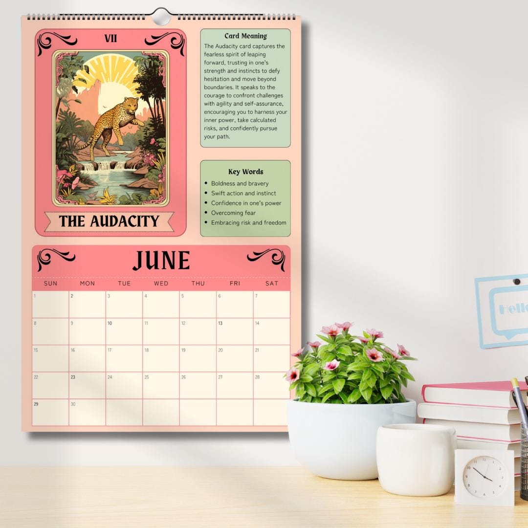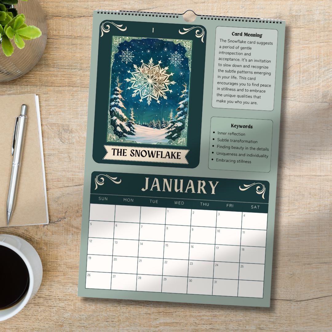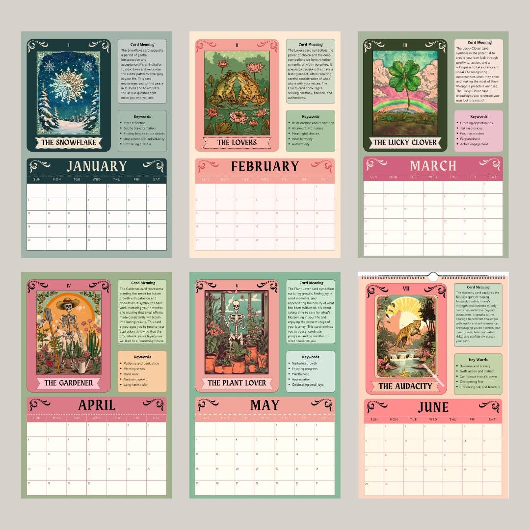 - Monthly Tarot Illustrations: Each month features a different tarot card, beautifully designed to reflect the season's essence.
