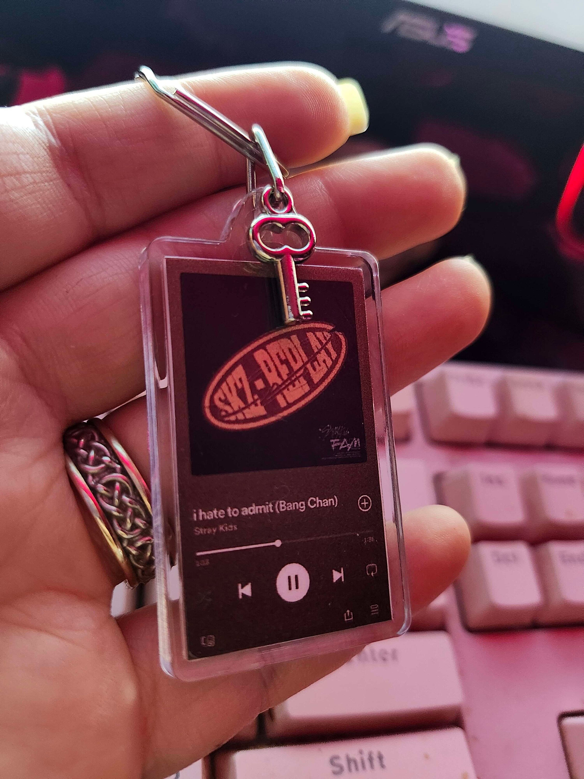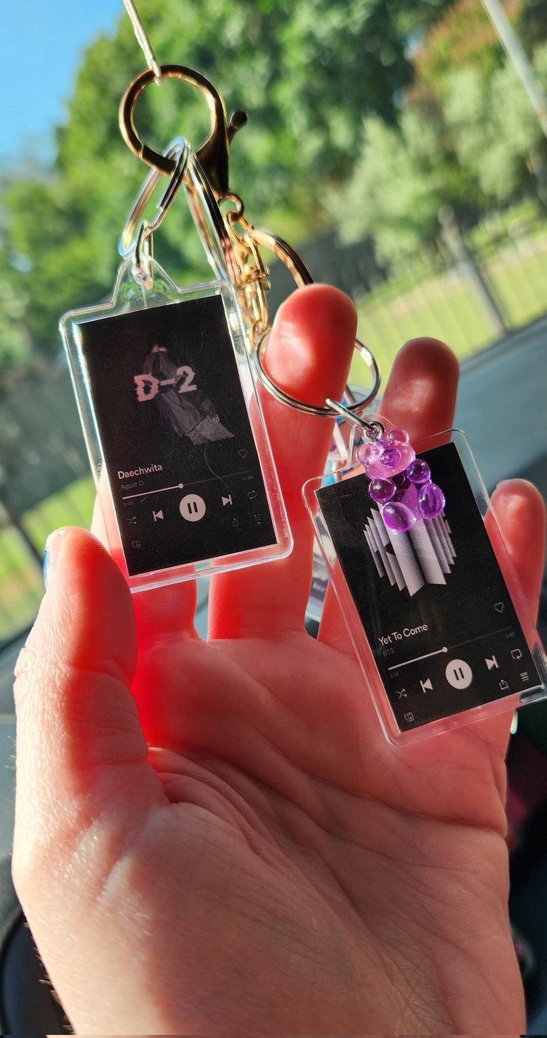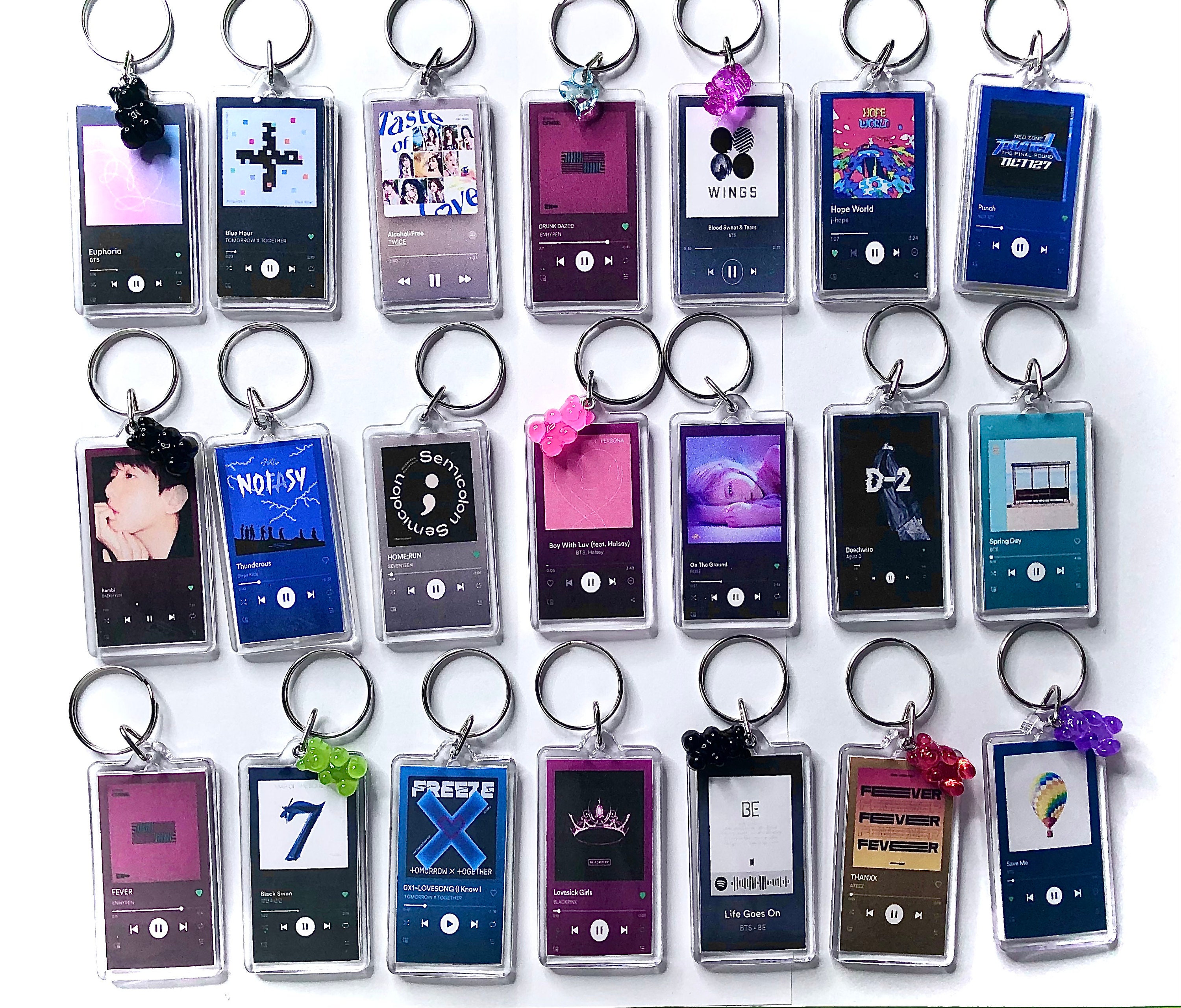 Spotify Keychain w/ your favorite song/artist! You can choose single or double sided and add an adorable charm!
