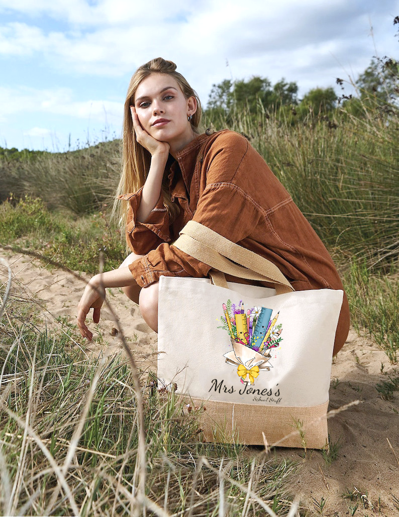 - UNIQUE PERSONALISED TEACHER'S BAG: Add any name or message to make this tote bag a unique gift. Imagine the joy on their faces when they see their name beautifully displayed!