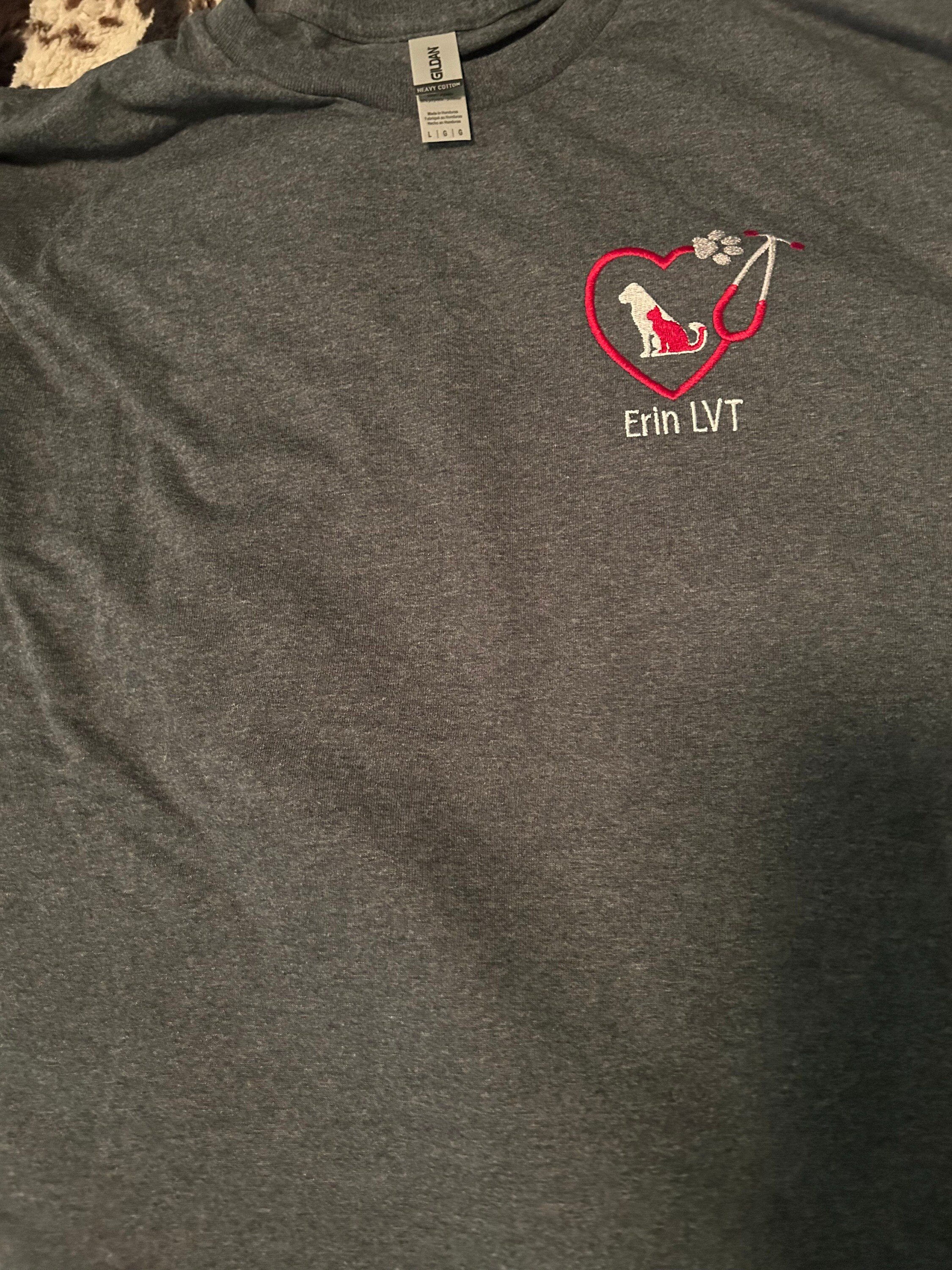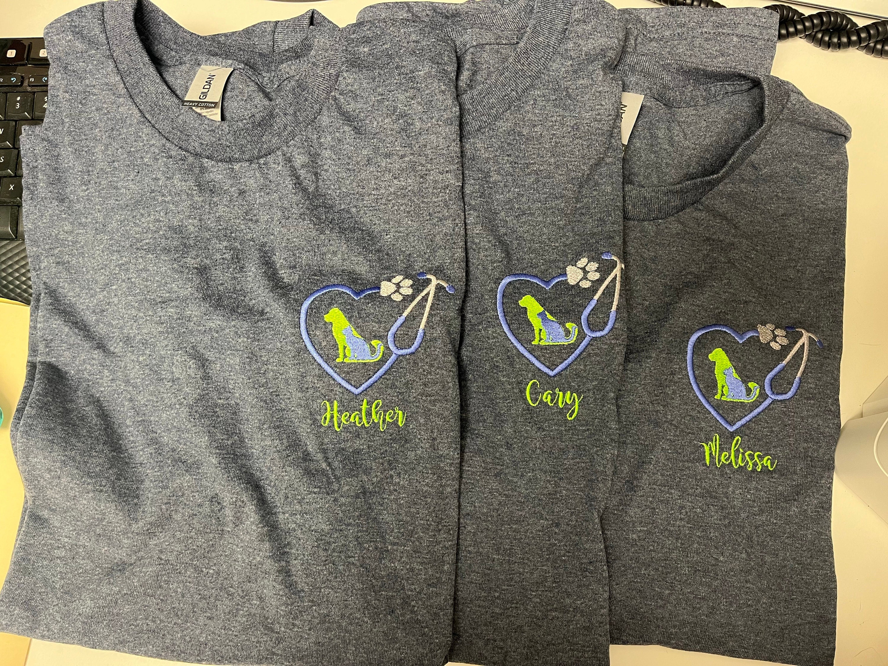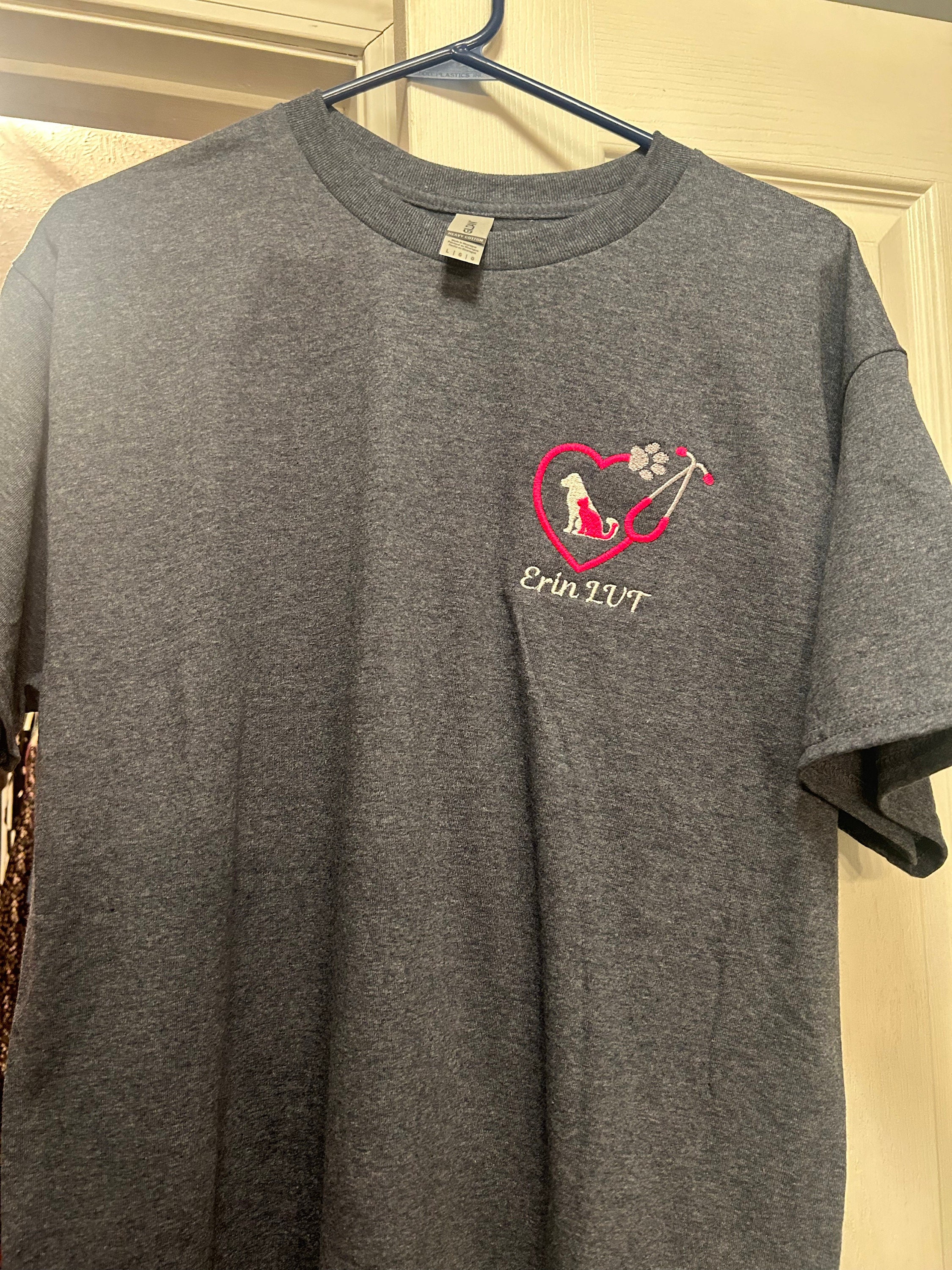 Our #1 selling vet tech design is now available on tshirts! These tees are perfect for summertime wear and make great gifts for vet techs, vet assistants, vet med students, vet receptionists, etc. You can choose any animal listed in our charts or message us if there is an animal you would like that is not listed. You can choose to have a stethoscope frame around the animal or the animal itself.