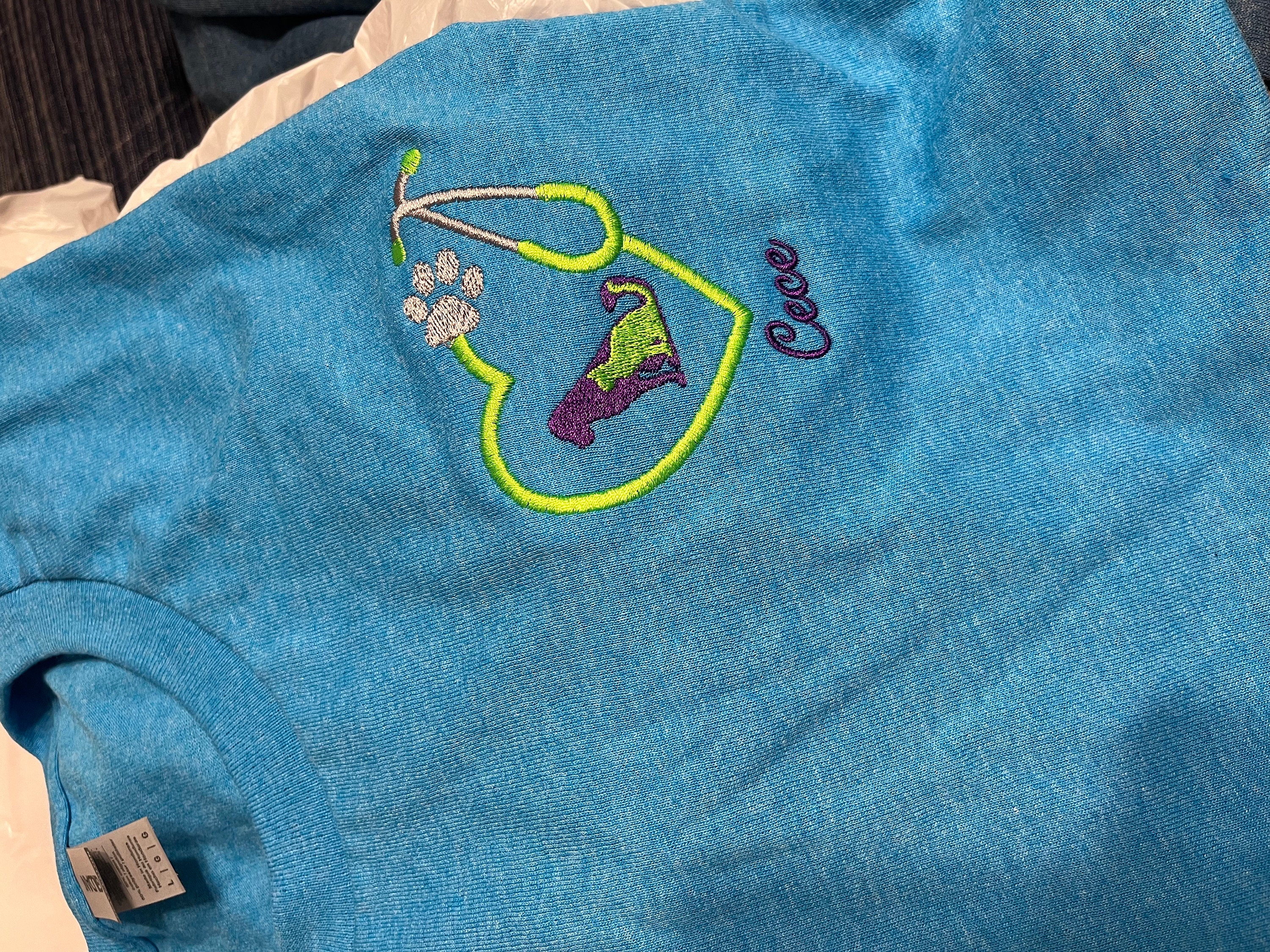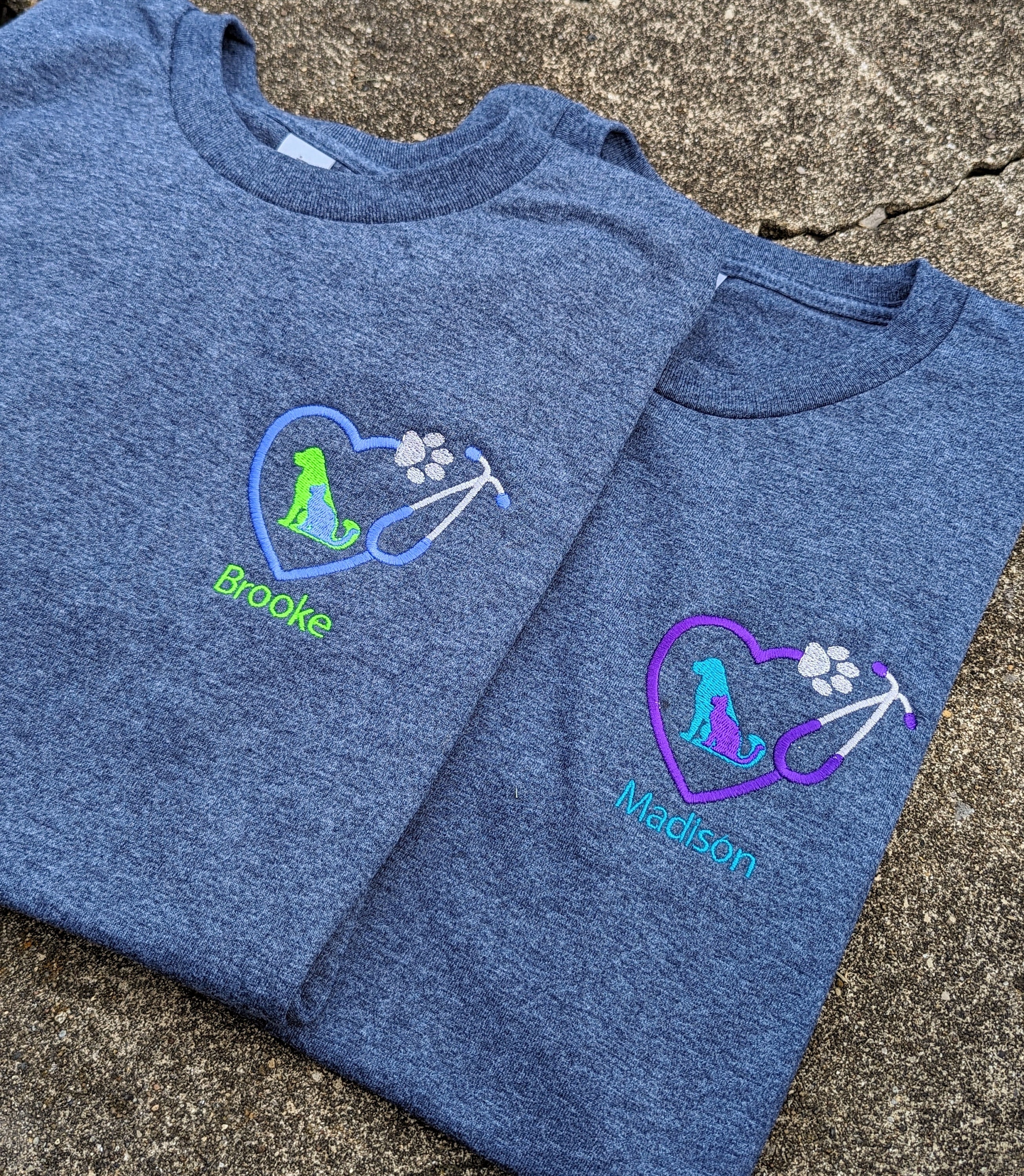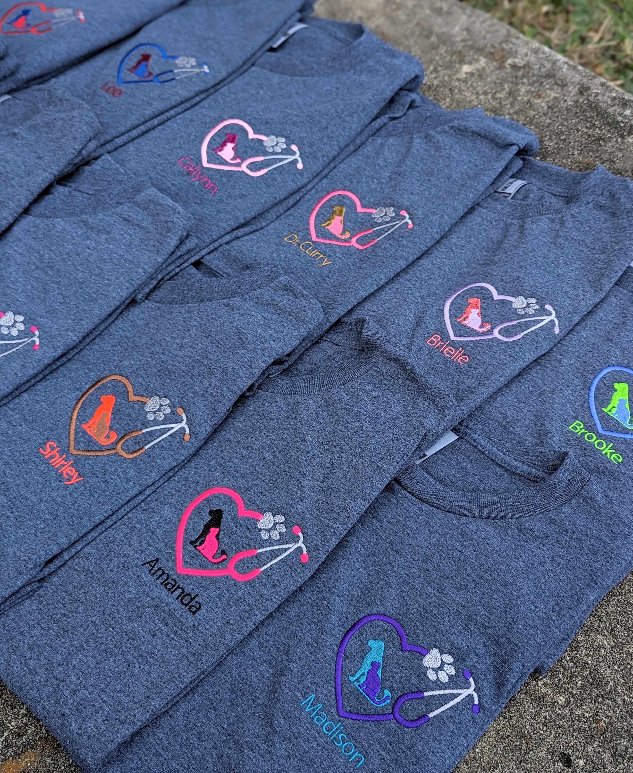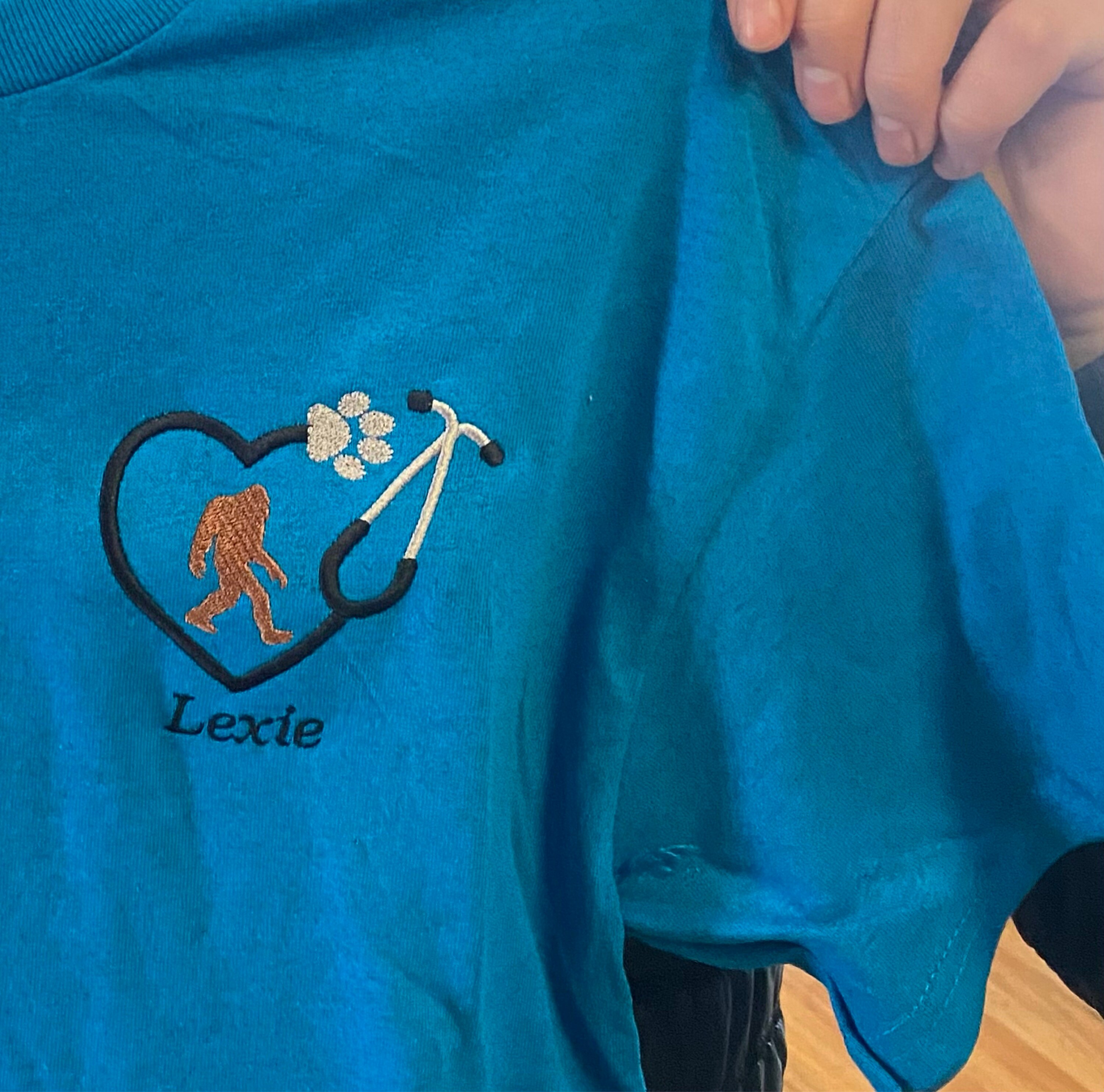 Our #1 selling vet tech design is now available on tshirts! These tees are perfect for summertime wear and make great gifts for vet techs, vet assistants, vet med students, vet receptionists, etc. You can choose any animal listed in our charts or message us if there is an animal you would like that is not listed. You can choose to have a stethoscope frame around the animal or the animal itself.